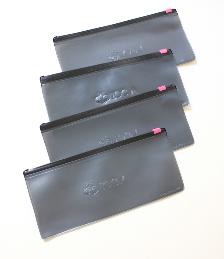 Tous les pinceaux sont soigneusement emballés dans des petites housses de protection en plastique souple avec fermeture : une idée géniale ! Je pars en vacances demain et je peux d’ores et déjà vous dire que ces pochettes vont m’être très utiles pour transporter mes pinceaux sans les maltraiter.