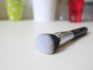 Toujours un excellent pinceau que j’utilise cette fois pour appliquer mon bronzer et/ou highlighter. Et ce rôle lui convient parfaitement ! Sa force permet une application précise, mais diffuse et ses poils denses estompent ce qu’il faut estomper tout en laissant la matière nécessaire.
