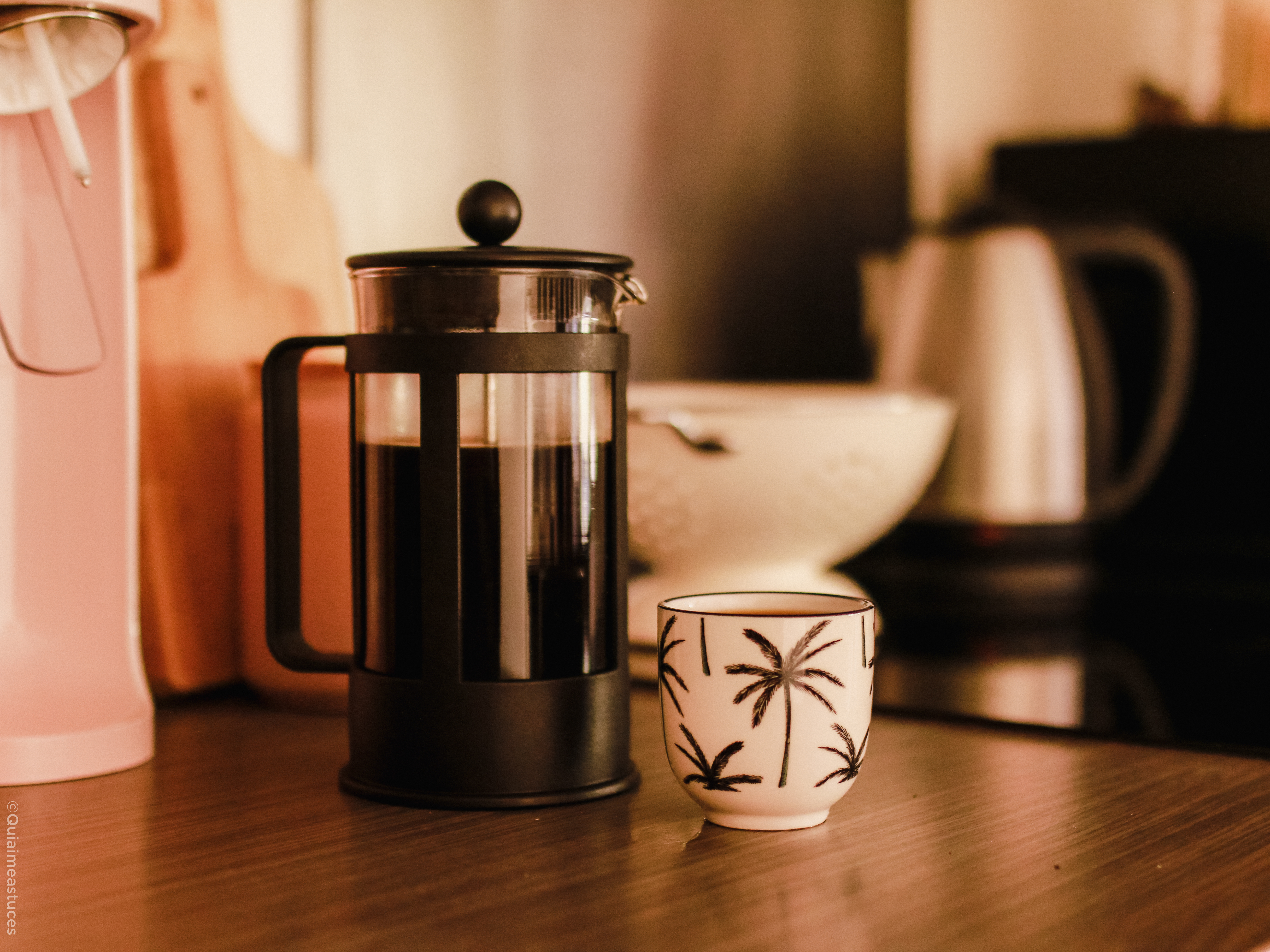 Pour finir, j’ai une cafetière à filtre (j’utilise un filtre réutilisable) que j’aime beaucoup et j’ai aussi une Bodum, mais je bois tellement de café que je la sors très peu !
