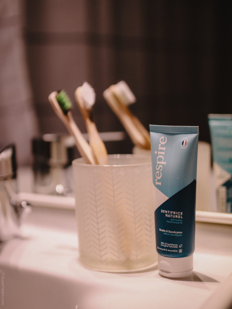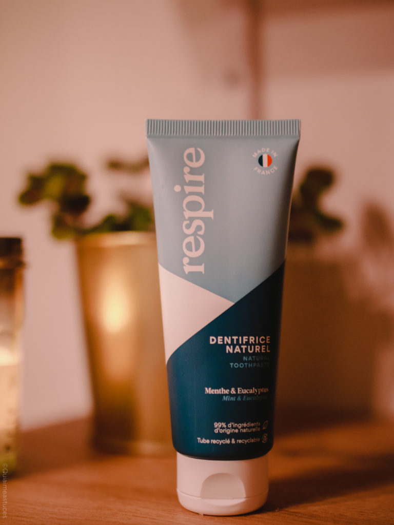 Tout d’abord, il faut savoir que Respire est une marque française et je trouve ça très cool ! Les déodorants sont fabriqués en Bretagne, la gamme solide dans le sud de la France et le dentifrice en Normandie (bon à savoir). De ce que j’ai pu voir, les formules contiennent plus de 94% (minimum) d’ingrédients d’origine naturelle & excluent les substances controversées. Les produits sont 100% vegan et les ingrédients ne sont pas issus de l’exploitation animale ni testés sur ces derniers, c’est donc encore un point positif.