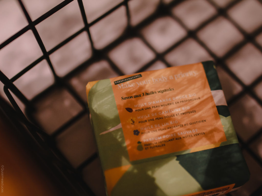 Déjà… l’odeur ! JUSTE WOW. C’est un énorme coup de coeur. Bon, je suis une grande amatrice de poires donc forcément, il y avait peu de chance pour que je n’aime pas. Mais c’est une bonne odeur de poire, rien de chimique, ni too much et ça j’adore. Le format est top, tout est bien expliqué sur le carton. Concernant l’utilisation, ça permet de se laver comme avec un savon classique. Moi qui étais plus habituée aux gels douches liquides, je dois avouer que ça ne m’a pas du tout dérangé ou perturbé, au contraire. Ce savon de 100g m’a duré un petit moment tout de même, environ 2 mois. Il mousse, mousse, mousse et son emballage est en papier 100% recyclable.