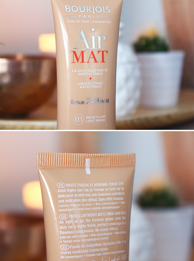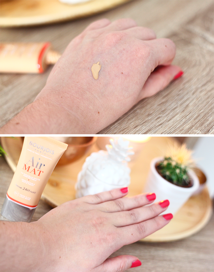 10 juin, 2016J’ai le fond de teint « Air Mat » de Bourjois et je dois avouer que j’en suis assez satisfaite! Je le trouve cependant assez difficile à travailler (la texture sèche rapidement) et j’aurais aimé un fini un petit peu plus naturel^^. Mais bon c’est un excellent rapport qualité/prix ;).