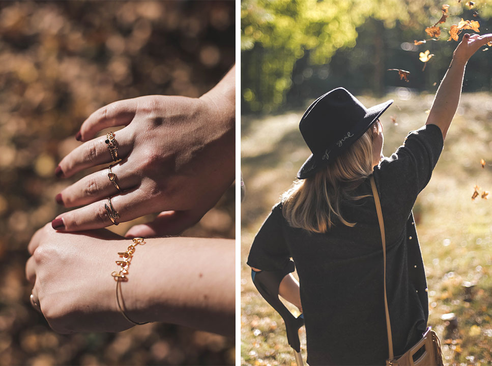 Côté accessoires, en ce moment plus j’ai de bagues et plus je suis contente ahah ! J’ai craqué pour ce lot chez H&M et elles tiennent super bien donc je suis ravie. Un autre bijou que je porte sans arrêt depuis que je l’ai reçu c’est ce sublime bracelet « Happy » signé Atelier Paulin. Caudalie m’avait fait la surprise il y a quelques mois et autant vous dire que ça m’a beaucoup touché… et puis entre nous, ça me ressemble pas mal au niveau du message, non ? 😛 Pour finir la tenue en beauté, ce magnifique vernis Dior. Une petite merveille !