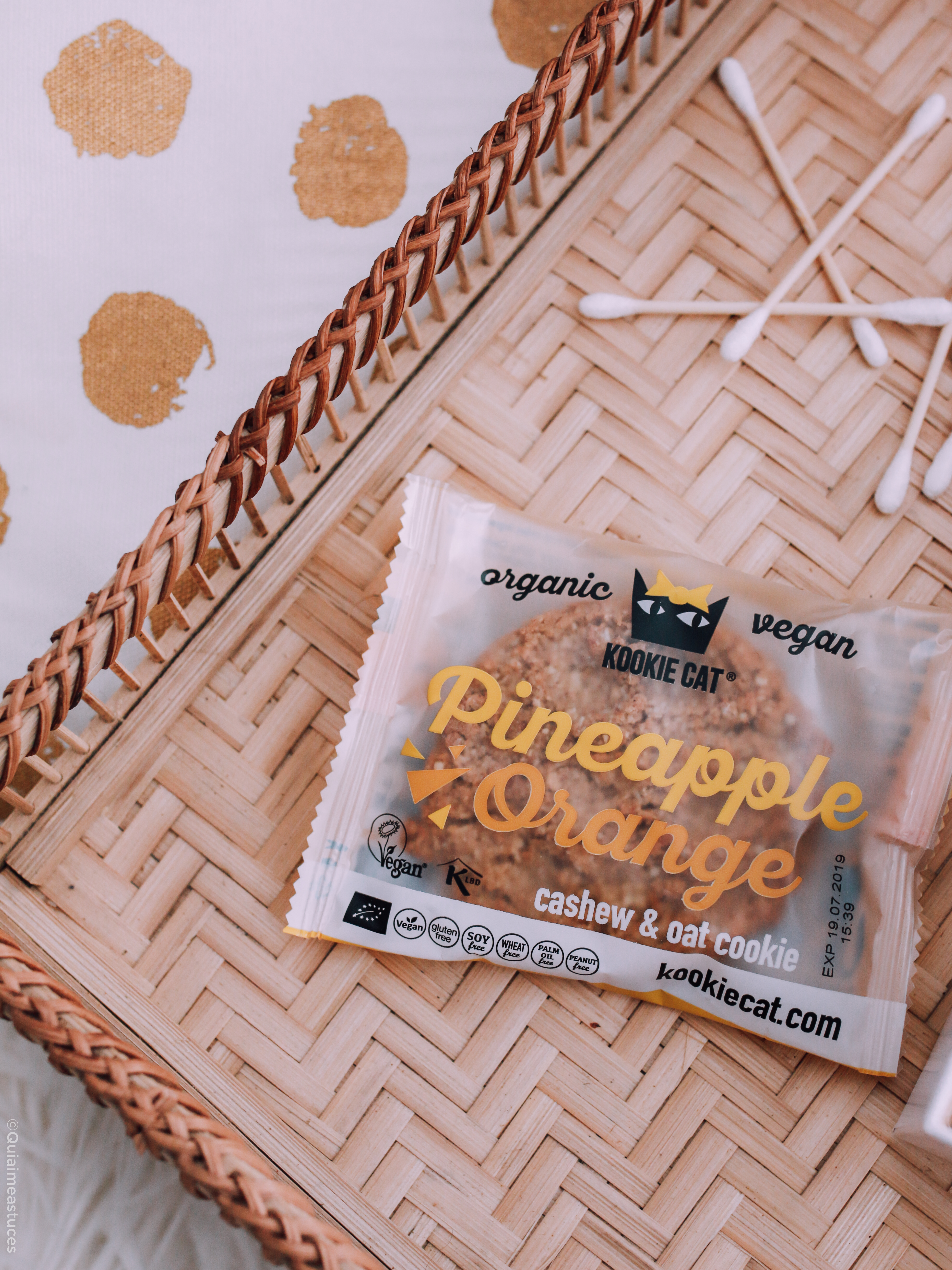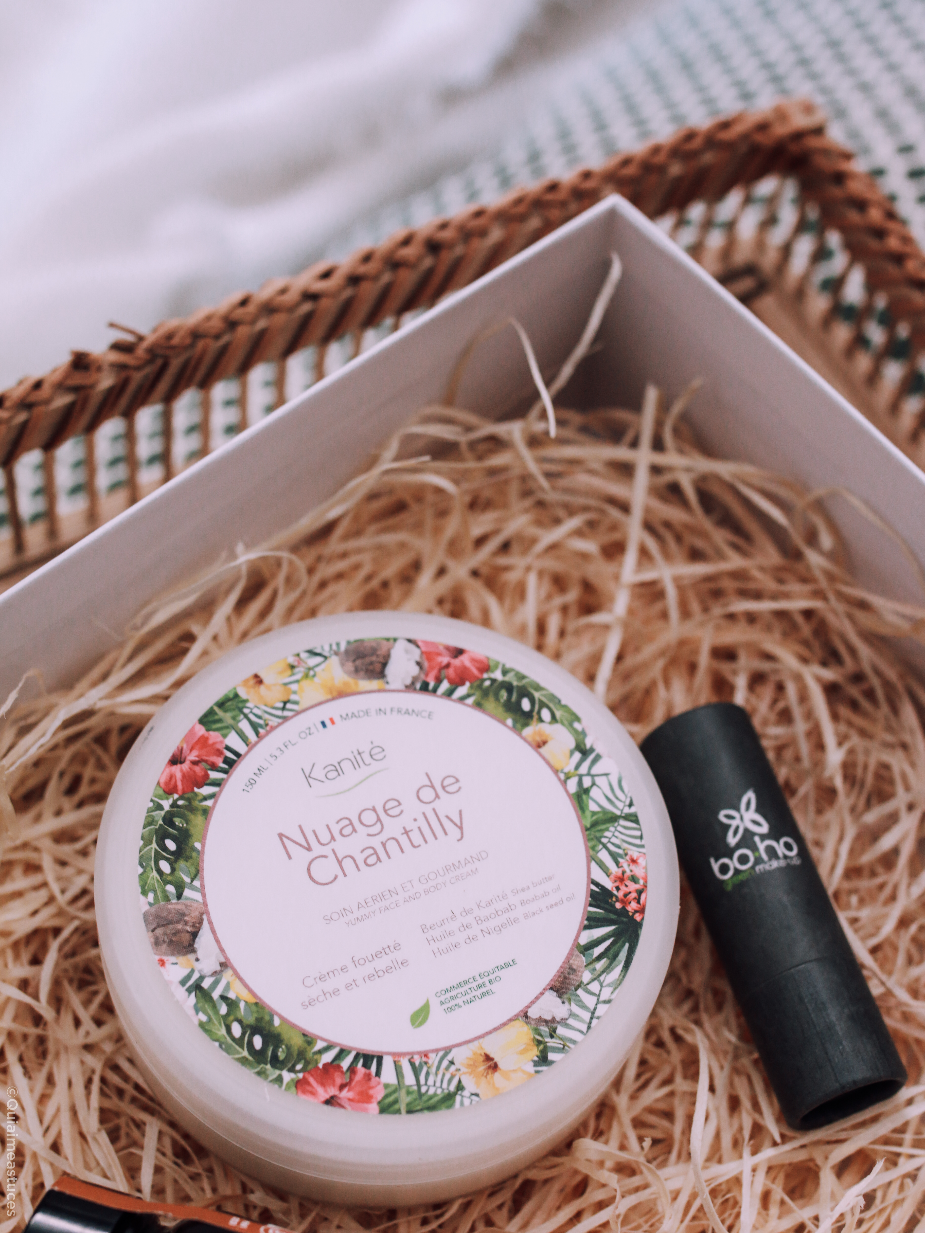 C’est, comme vous l’imaginez, celle sur laquelle j’ai le moins de recul pour l’instant. Malgré tout je peux vous dire que ce biscuit vegan & sans gluten ananas-orange Kookie Cat était… à tomber ! Je vais m’en trouver c’est certain. Coup de coeur pour la crème Kanité « nuage de chantilly » qui, comme son nom l’indique est divine. L’odeur, j’adore, la texture est top, pas de film gras sur la peau : FAN. Elle a des vertus de régulation sur le sébum et peut s’utiliser comme base, crème de jour & de nuit, soin anti-rides, la totale. On adore ! J’ai hâte de tester l’exfoliant aux noyaux d’argan et vous en donner des nouvelles. Le correcteur Boho Green est malheureusement un peu trop foncé pour moi maintenant, mais je suis sûre qu’il sera parfait cet été. Si j’ai petit défaut qui me vient à l’esprit c’est le côté stick que je ne trouve pas très hygiénique. Je pense notamment aux personnes qui, comme moi, souffrent d’acné.