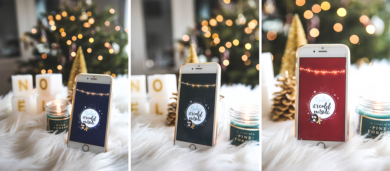 Après les pancakes de Novembre, je peux vous dire que ce petit nouveau me ressemble encore plus. Pourquoi ? Oh il regroupe tout ce que j’aime en ce matin. À savoir, la chanson « Baby it’s cold outside » (version Colbie Caillat & Gavin DeGraw), un bon cappuccino vanille, des petits biscuits à la cannelle, les fameuses lumières que j’aime tant, sans oublier un soupçon de neige. Que serait Noël sans quelques flocons… Il me reste à espérer que vous aimerez habiller vos téléphones avec la nouvelle création. Entre nous j’ai déjà adopté le vert que je trouve parfait (je suis dans ma folie vert / sapin tout ça, tout ça ahah). Hâte d’avoir vos retours ! Et tout bientôt je vous montrerai ma table des fêtes. Je me dis que ça pourra peut-être donner des idées sympa côté déco. J’attends encore quelques éléments, mais j’ai déjà hâte de faire les photos ! Oh, j’ai oublié de vous parler du bonus. Comme chaque année, en plus des fonds d’écran je vous ai glissé en fin d’article 4 cartes de voeux à imprimer ou à envoyer à vos proches pour les fêtes. Vous aimez ? Très belle découverte ♥