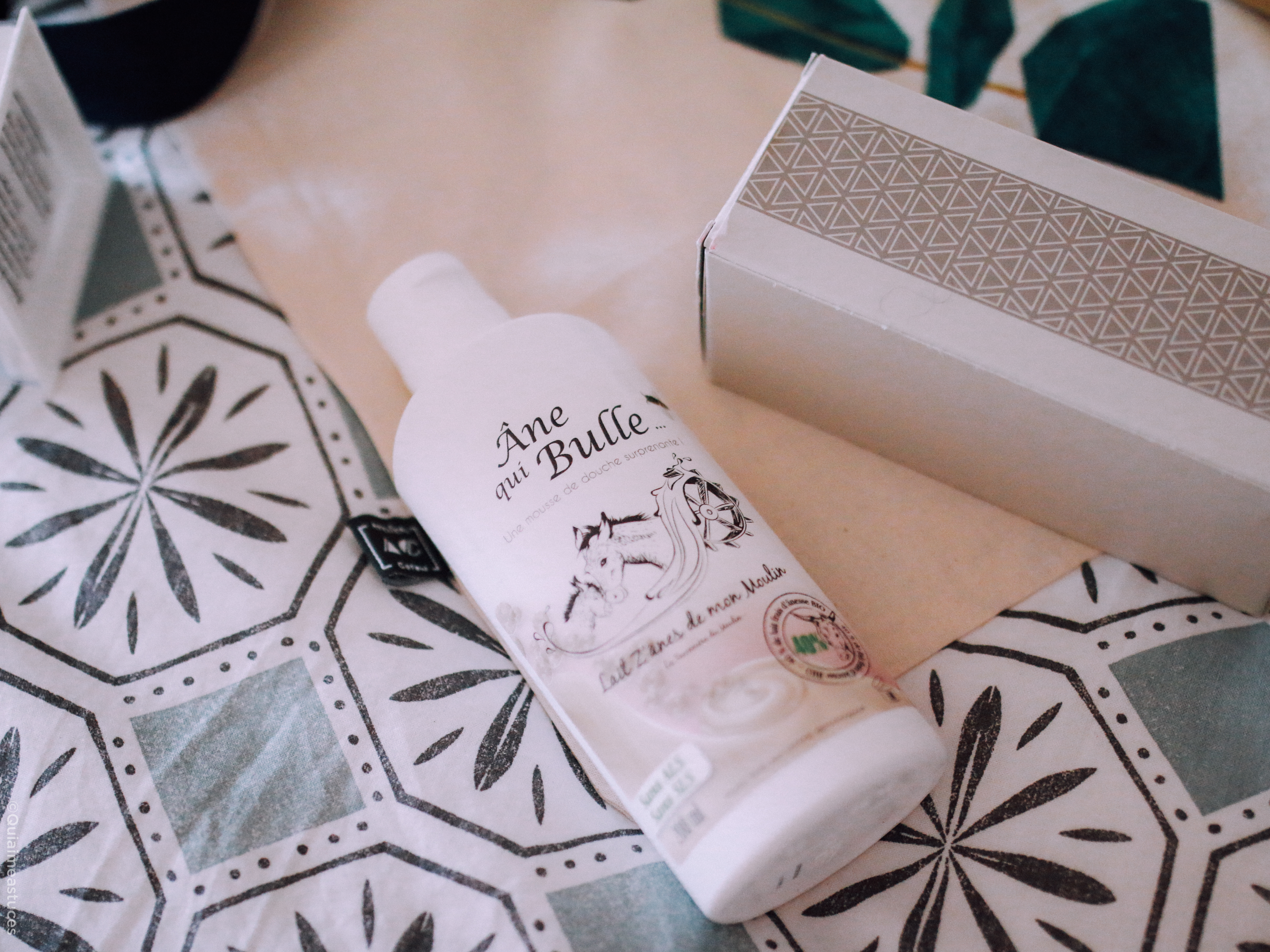 Pour finir cette très jolie box, j’ai pu recevoir cette mousse de douche au lait d’ânesse de la Savonnière du Moulin fabriquée en France et certifiée bio. Des produits faits avec amour et ça se ressent ! Cette mousse laisse la peau toute douce et ça je valide à 100%. Ma peau est très capricieuse et réagit facilement aux agressions du quotidien ou aux gels douche du commerce. Or, je teste depuis près de 2 semaines cette mousse et je l’adore ! Le petit plus ? Elle ne contient aucun sulfate, ni ALS et son contenu présente 99% d’ingrédient d’origine naturelle.