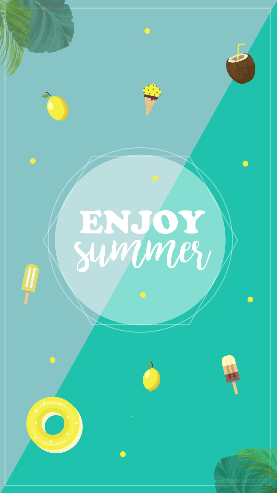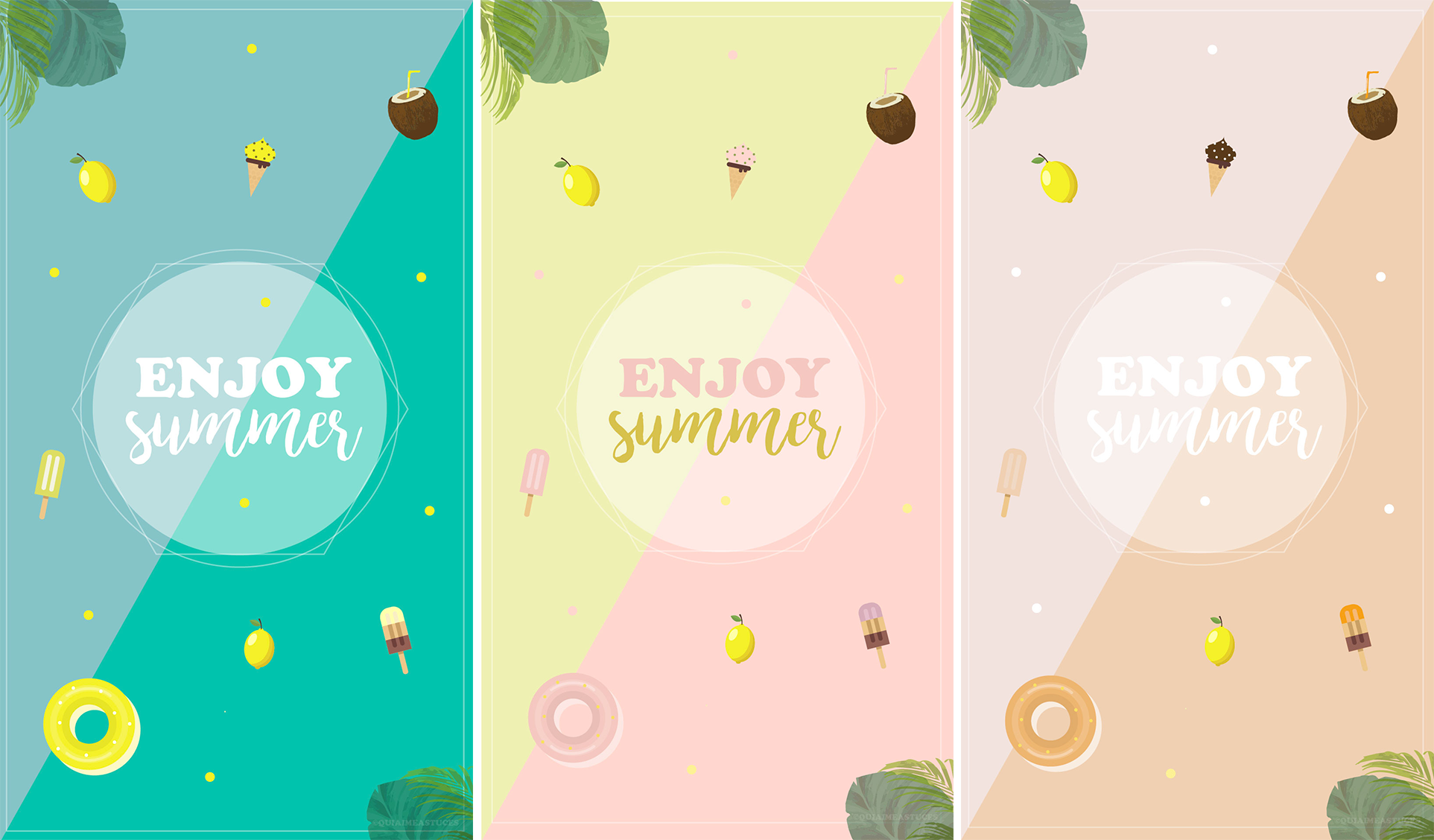 Hello hello ! J’espère que vous allez bien malgré cette chaleur ? Heureusement que l’on peut un peu plus respirer le soir et surtout cela nous donne une bonne excuse pour abuser des mojitos bien frais, glaces & sorbets, même si, entre nous, on n’a pas besoin de ça pour en profiter haha ! Comme promis le mois dernier, voici le petit nouveau dans la famille des fonds d’écran. Mode estival activé ! Je me suis fait plaisir sur les couleurs et vous en propose 3 différents. J’ai entendu vos envies de couleurs un peu plus claires, pastels les précédents mois. Que serait un fond d’écran « Quiaimeastuces » d’été sans un citron ? Ma passion revient en force et elle s’accompagne de tout ce que j’aime (bon pas tout, c’est vrai, sinon il serait un chouilla surchargé). Il faut que j’en garde un peu pour celui d’août 🙂 Sinon, vous partez un petit peu cet été ? Si oui, vers où ? Moi, comme tous les ans depuis 23 ans, je vais retrouver mon cher Atlantique et profiter de Saint-Palais-sur-mer pendant quelques semaines. J’ai si hâte… Je vous glisse ici l’article avec mes bonnes adresses si jamais vous partez vers Royan / La Palmyre, ça peut vous être pratique.