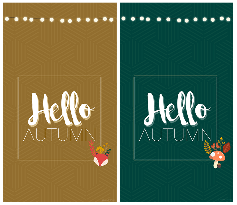Hello hello vous ! J’espère que vous allez bien ? L’été indien est superbe chez vous aussi ? En ce moment je ne fais qu’admirer les jolies couleurs que la nature peut nous offrir. C’est magnifique. Un spectacle qui change au gré des heures et du soleil. Même dans mon intérieur, tout y est plus chaud, plus lumineux. J’adore ! C’est avec quelques jours de retard sur l’automne que je vous propose aujourd’hui un nouveau (ou plutôt deux nouveaux) fonds d’écran. Les saisons m’inspirent énormément lors de la phase création. Pour tout vous dire, c’est en pleine nuit que m’est venue l’idée de ce superbe vert. J’ai ouvert les yeux et noté l’idée sur mon téléphone avant de me rendormir pour ne pas oublier (mémoire de poisson rouge, bonjour). Puis, autour de cette couleur se sont greffées d’autres idées. Des feuilles ? Oui, une évidence. Un renard ? J’en avais tellement envie (beaucoup trop mignon non ?) et pourquoi pas un champignon, si caractéristique de cette jolie période. Je sais, j’aime beaucoup placer les guirlandes lumineuses, mais pour ma défense je trouve ça tellement joli. Ça me rappelle les ambiances guinguettes et ça fait tout de suite la différence côté lumière dans un intérieur non ? Il y a quelque chose de féérique…