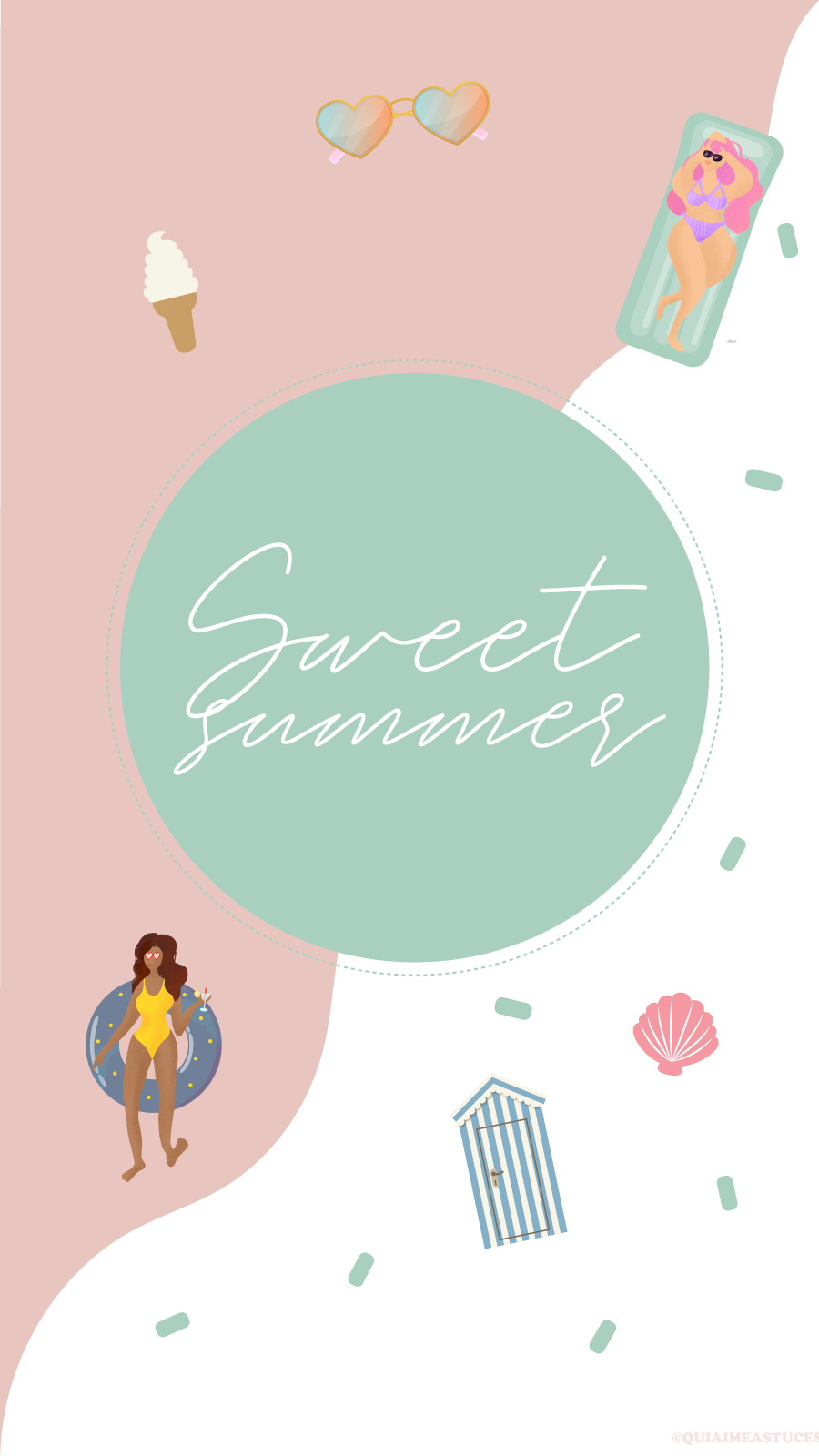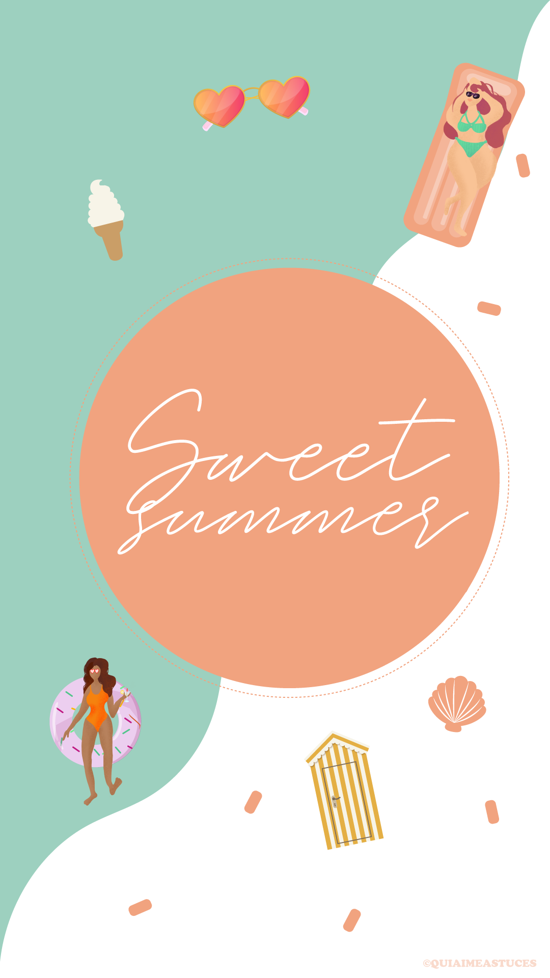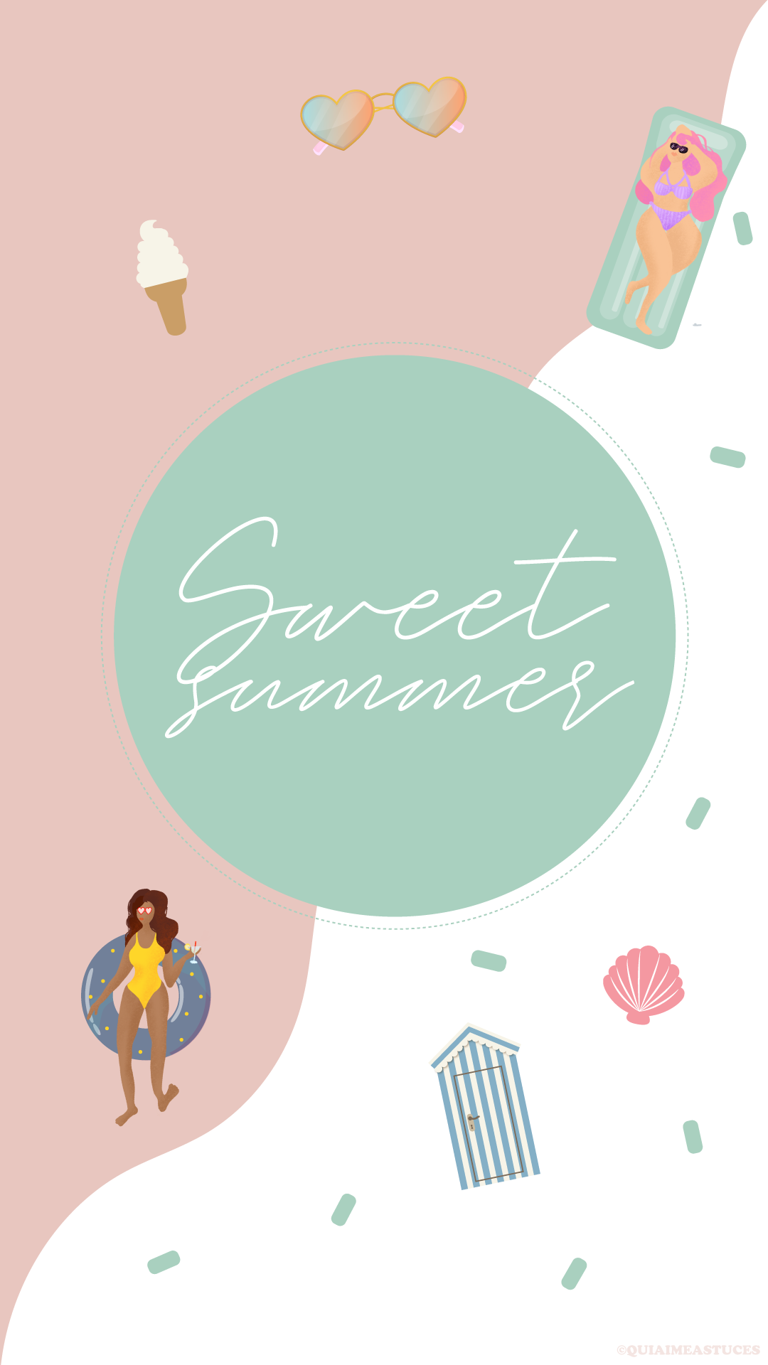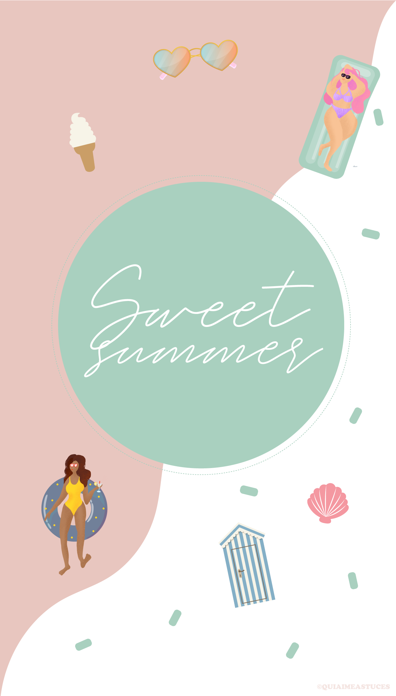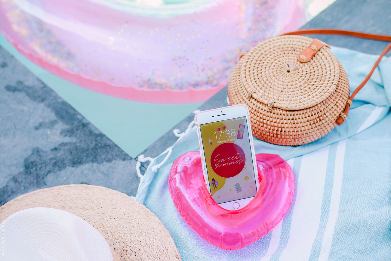 Hello hello ! J’espère que vous allez bien ? Quel plaisir de revenir par ici 🙂 D’autant plus avec un nouveau fond d’écran. Ça faisait si longtemps… Alors pour me faire pardonner (ahah) je l’ai décliné en trois coloris, mais aussi vous pourrez le retrouver pour vos téléphones et vos ordinateurs. Cette fois-ci j’ai une fois de plus souhaité des couleurs pep’s, un peu de pop pour le côté bonne humeur et estival. Cela faisait un moment que j’avais envie que Boubou y ajoute sa pâte. Je ne suis sûrement pas très objective, mais je le trouve très douée. Vous pouvez retrouver tous ses dessins sur son compte Instagram @Stickbame. Quand il a dessiné les deux p’tites « nénéttes » j’ai de suite adoré ! Je ne lui ai rien dit, aucune consigne et j’ai adoré le style, les couleurs, leurs corps et leurs cheveuuuux colorés ! Un air de vacances peut-être un peu en avance pour certains ? Vous partez où cette année les cop’s ? Les détails indispensables à mes yeux, à savoir : des lunettes de soleil colorées, une bonne glace italienne (vanille la base ahah) et des bouées (ma passion pour les bouées n’est plus un secret si vous me suivez sur Instagram…). J’avoue avoir une petite préférence pour le fond bleu et orange. Ce sont mes couleurs du moment !