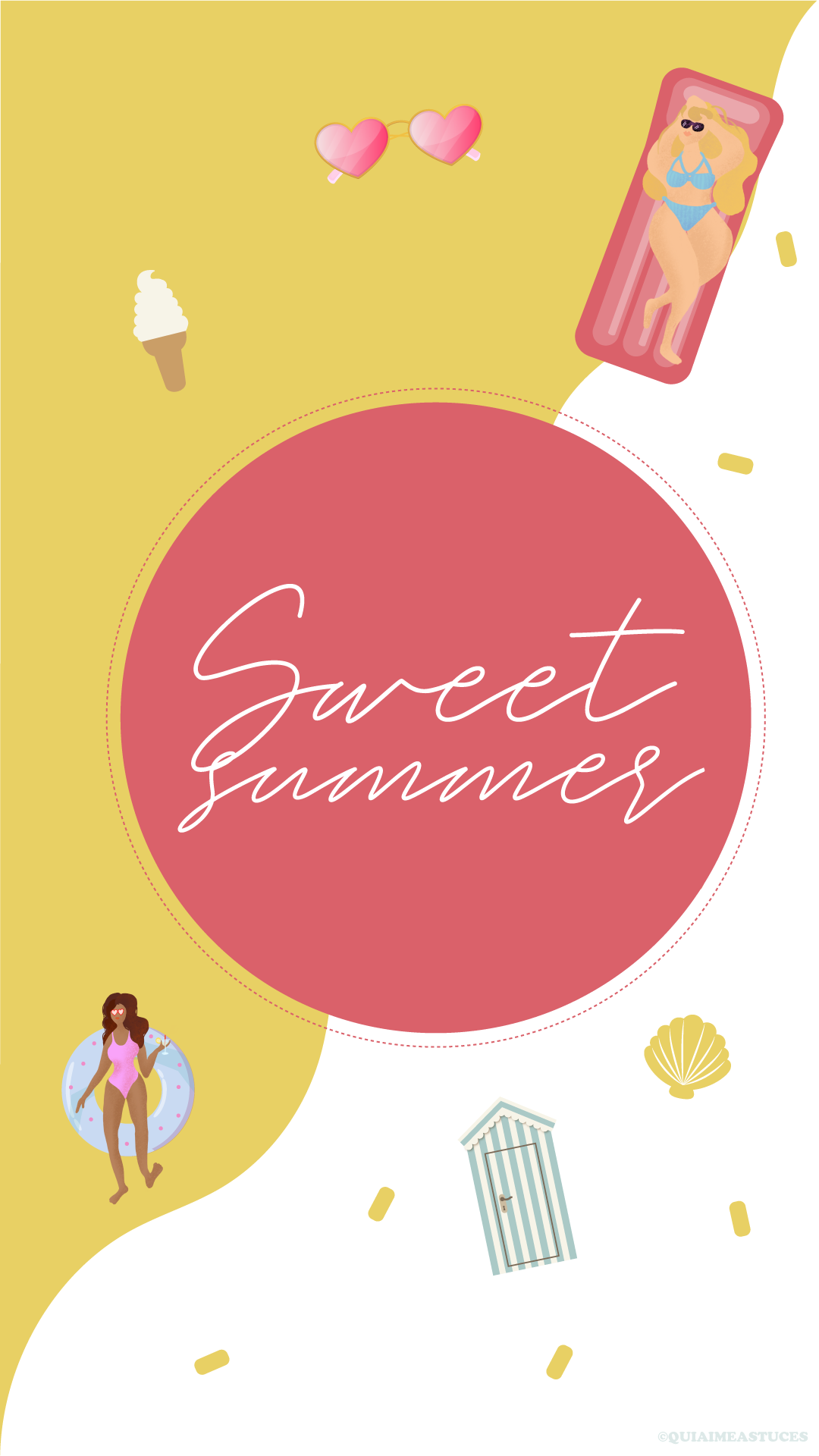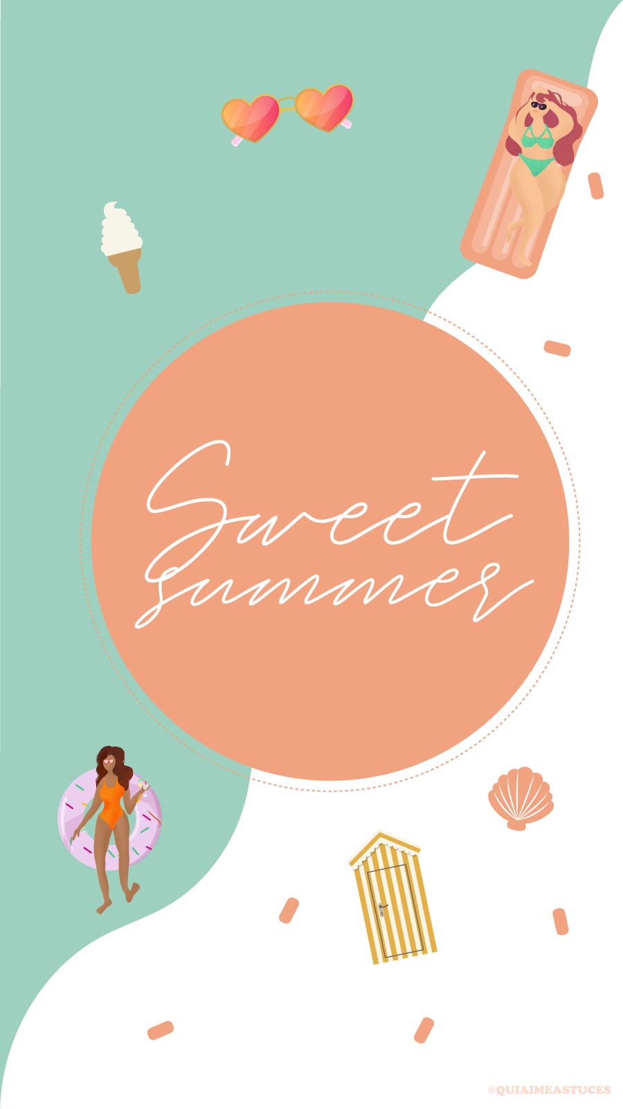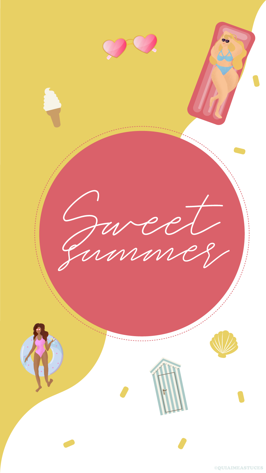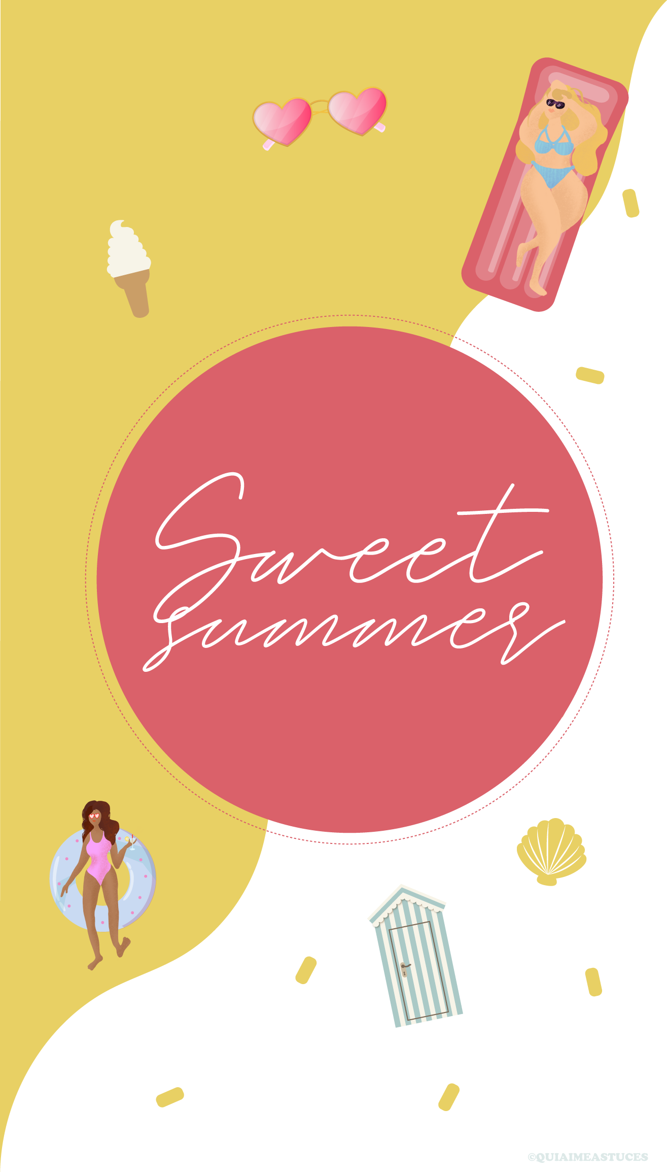 Hello hello ! J’espère que vous allez bien ? Quel plaisir de revenir par ici 🙂 D’autant plus avec un nouveau fond d’écran. Ça faisait si longtemps… Alors pour me faire pardonner (ahah) je l’ai décliné en trois coloris, mais aussi vous pourrez le retrouver pour vos téléphones et vos ordinateurs. Cette fois-ci j’ai une fois de plus souhaité des couleurs pep’s, un peu de pop pour le côté bonne humeur et estival. Cela faisait un moment que j’avais envie que Boubou y ajoute sa pâte. Je ne suis sûrement pas très objective, mais je le trouve très douée. Vous pouvez retrouver tous ses dessins sur son compte Instagram @Stickbame. Quand il a dessiné les deux p’tites « nénéttes » j’ai de suite adoré ! Je ne lui ai rien dit, aucune consigne et j’ai adoré le style, les couleurs, leurs corps et leurs cheveuuuux colorés ! Un air de vacances peut-être un peu en avance pour certains ? Vous partez où cette année les cop’s ? Les détails indispensables à mes yeux, à savoir : des lunettes de soleil colorées, une bonne glace italienne (vanille la base ahah) et des bouées (ma passion pour les bouées n’est plus un secret si vous me suivez sur Instagram…). J’avoue avoir une petite préférence pour le fond bleu et orange. Ce sont mes couleurs du moment !