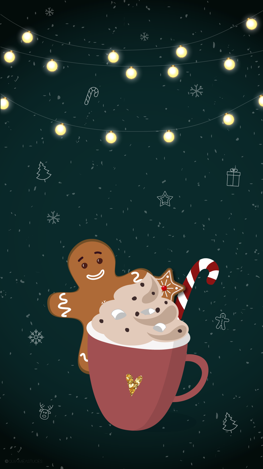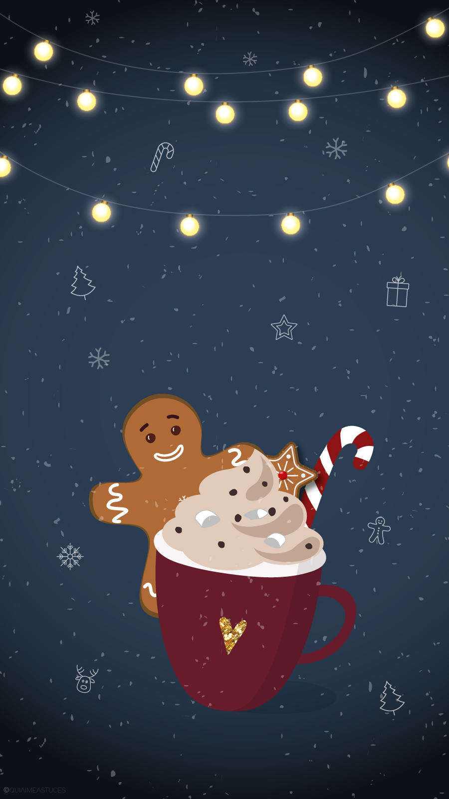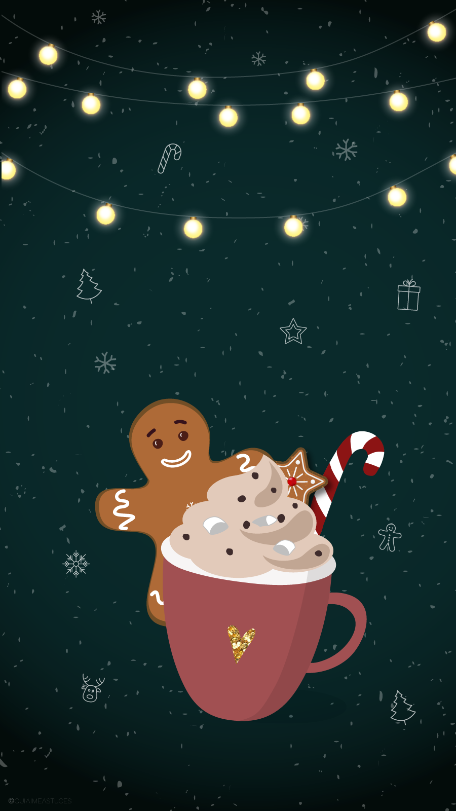 Hello hello! J’espère que vous allez bien ? C’est le coeur léger, écoutant la playlist de Noël d’Angéline (Carnet Prune) et sirotant un chocolat chaud (ultra cliché je sais ahah…) que je vous écris cet article aujourd’hui. Autant vous dire que je suis dans mon élément à 100%. C’est définitivement ma période préférée de l’année… Le froid, les odeurs gourmandes, les lumières, la préparation du sapin, l’ambiance bref je suis FAN de Noël. C’est donc logique que mes fonds d’écran préférés à préparer soient ceux de cette période… 🙂 J’ai allumé ma bougie senteur sapin ça me donne le sourire si vous saviez ahah. Je me suis une fois de plus éclatée à créer celui-ci. L’éternel petit biscuit en pain d’épice (comme chaque année, je l’adore), le chocolat chaud et les marshmallows, de la neige, des jolies guirlandes lumineuses pour rehausser le tout et le voici ! Je suis fan ! J’espère de tout coeur que vous l’aimerez aussi et qu’il vous donnera le smile dès que vous prendrez votre téléphone en main ♥ Comme bien souvent je l’ai prévu en 3 coloris car il en faut pour tous les goûts. Un rouge bordeaux profond, un joli bleu-vert canard, et un bleu plus foncé. Vous aimez ?