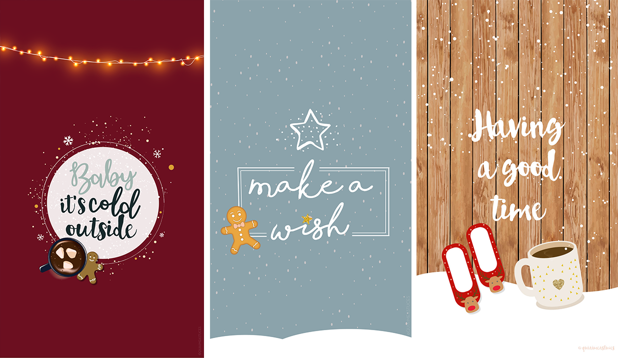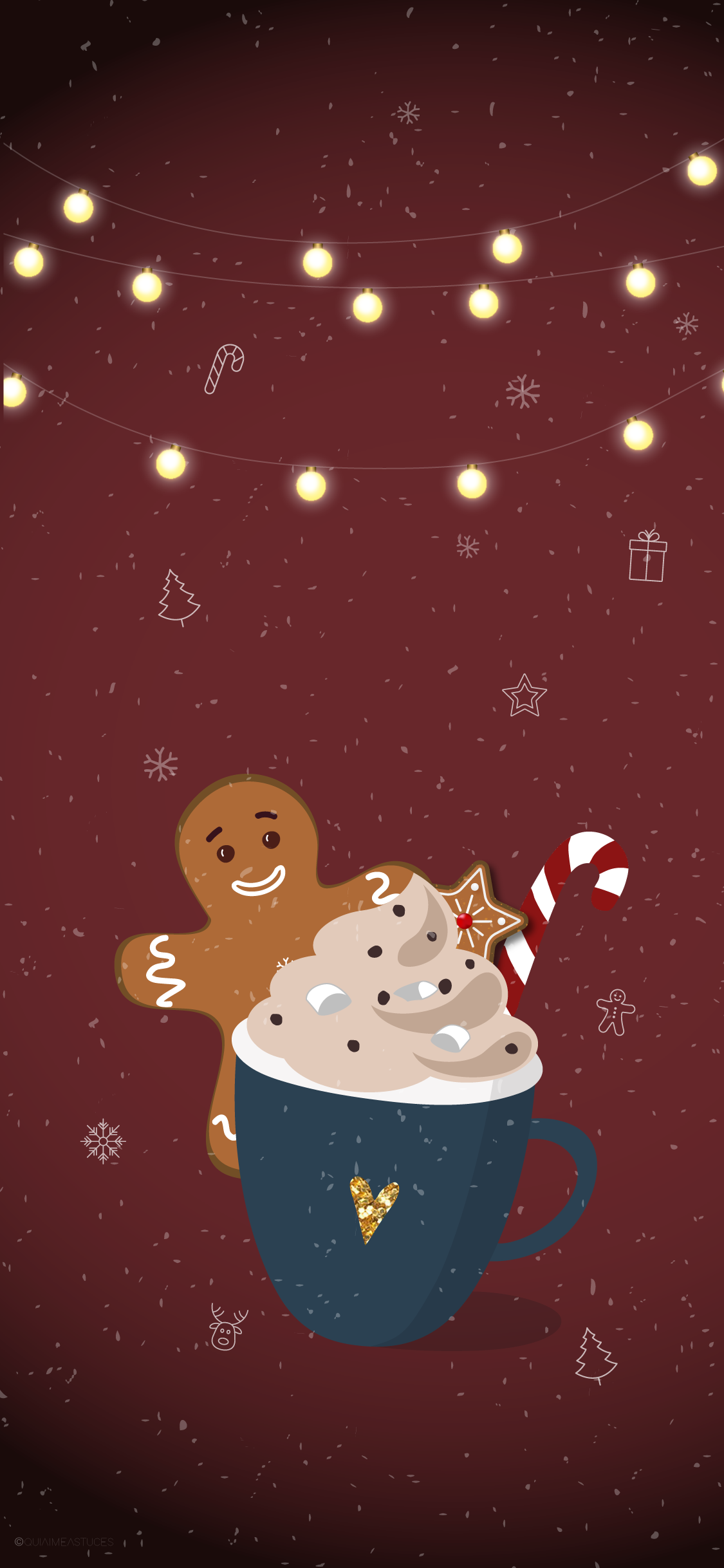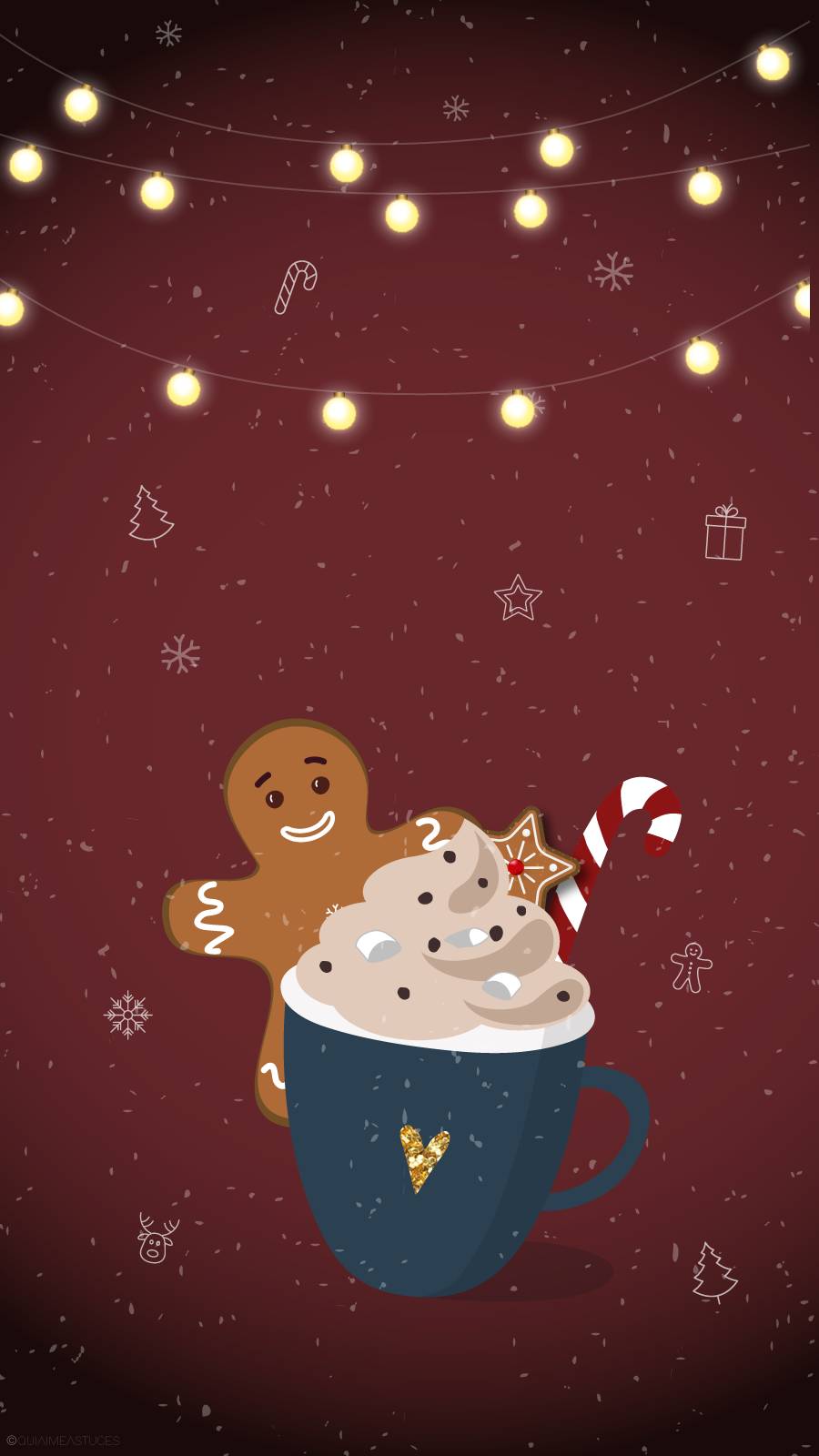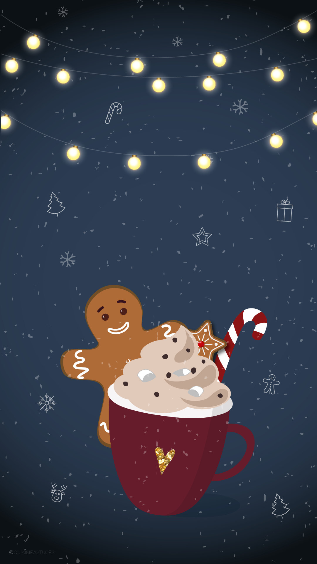 Hello hello! J’espère que vous allez bien ? C’est le coeur léger, écoutant la playlist de Noël d’Angéline (Carnet Prune) et sirotant un chocolat chaud (ultra cliché je sais ahah…) que je vous écris cet article aujourd’hui. Autant vous dire que je suis dans mon élément à 100%. C’est définitivement ma période préférée de l’année… Le froid, les odeurs gourmandes, les lumières, la préparation du sapin, l’ambiance bref je suis FAN de Noël. C’est donc logique que mes fonds d’écran préférés à préparer soient ceux de cette période… 🙂 J’ai allumé ma bougie senteur sapin ça me donne le sourire si vous saviez ahah. Je me suis une fois de plus éclatée à créer celui-ci. L’éternel petit biscuit en pain d’épice (comme chaque année, je l’adore), le chocolat chaud et les marshmallows, de la neige, des jolies guirlandes lumineuses pour rehausser le tout et le voici ! Je suis fan ! J’espère de tout coeur que vous l’aimerez aussi et qu’il vous donnera le smile dès que vous prendrez votre téléphone en main ♥ Comme bien souvent je l’ai prévu en 3 coloris car il en faut pour tous les goûts. Un rouge bordeaux profond, un joli bleu-vert canard, et un bleu plus foncé. Vous aimez ?
