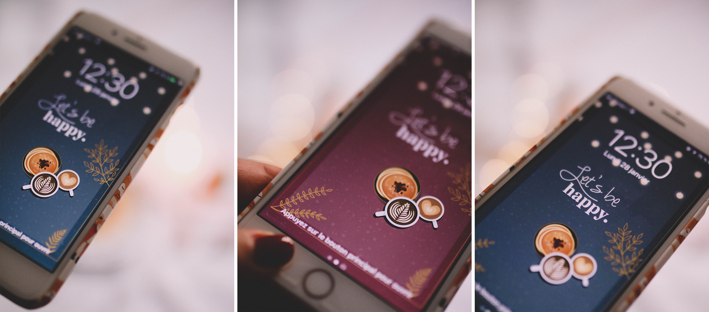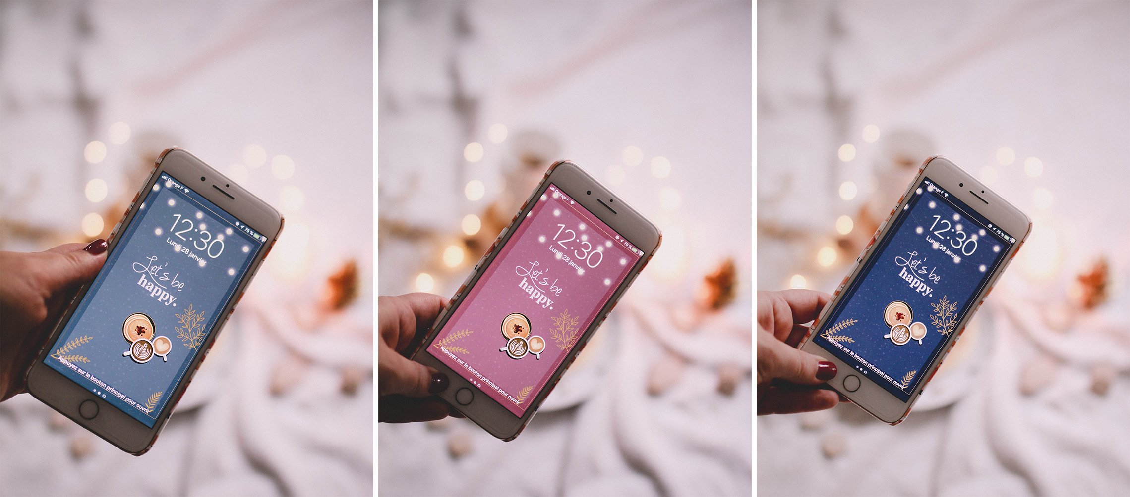 Hello hello ! J’espère que vous allez bien ? Olala je suis terriblement désolée… tellement en retard pour ce fond d’écran de janvier. Je pense qu’il serait d’ailleurs judicieux de dire février au stade où j’en suis ahah ! C’est la course depuis le début d’année, j’ai un retard fou. Enfin, il est enfin là et je l’adore ! Je sais ce que vous allez me dire… « Clem, encore des pancakes ? » que voulez-vous… j’aime beaucoup trop ça ! En hiver, c’est définitivement ma définition du bonheur avec un bon café, thé ou chocolat chaud. J’ai voulu, une nouvelle fois, rendre hommage aux célèbres pancakes de boubou ahah. Je crois que ce qui me plaît le plus ce mois-ci ce sont les couleurs… Le choix a été si difficile. Même encore aujourd’hui je ne sais pas lequel mettre en fond d’écran tant que les adore tous les trois. Et vous, lequel préférez-vous ? J’ai bien sûr, ajouté un peu de neige car il neigé lorsque j’étais en pleine création. Cela m’a donc beaucoup inspiré. Que serait un de mes fonds d’écran sans des guirlandes lumineuses et un petit message positif ? Simple, mais efficace. Il fait du bien au moral dès que l’on allume son téléphone. Vous en trouvez pas ? :))