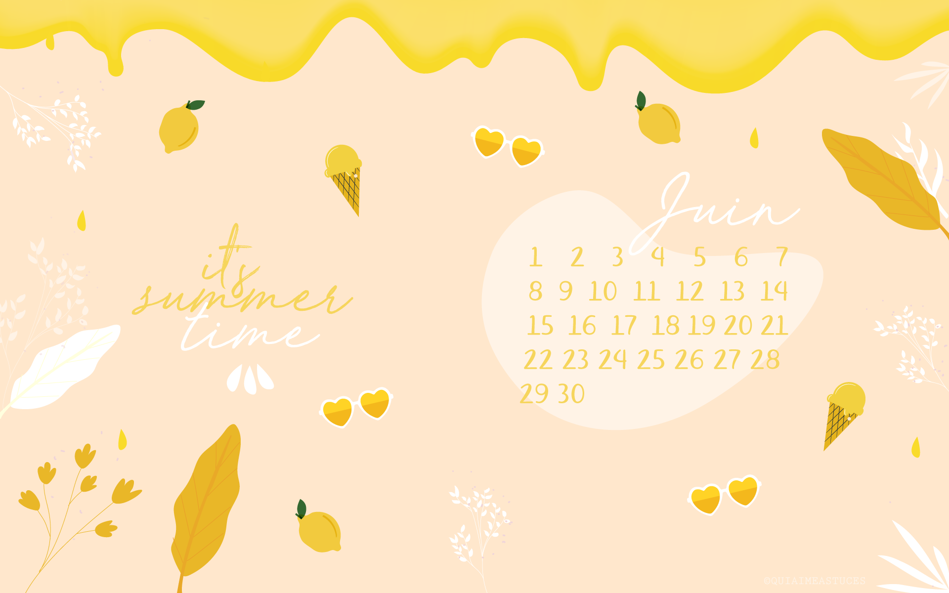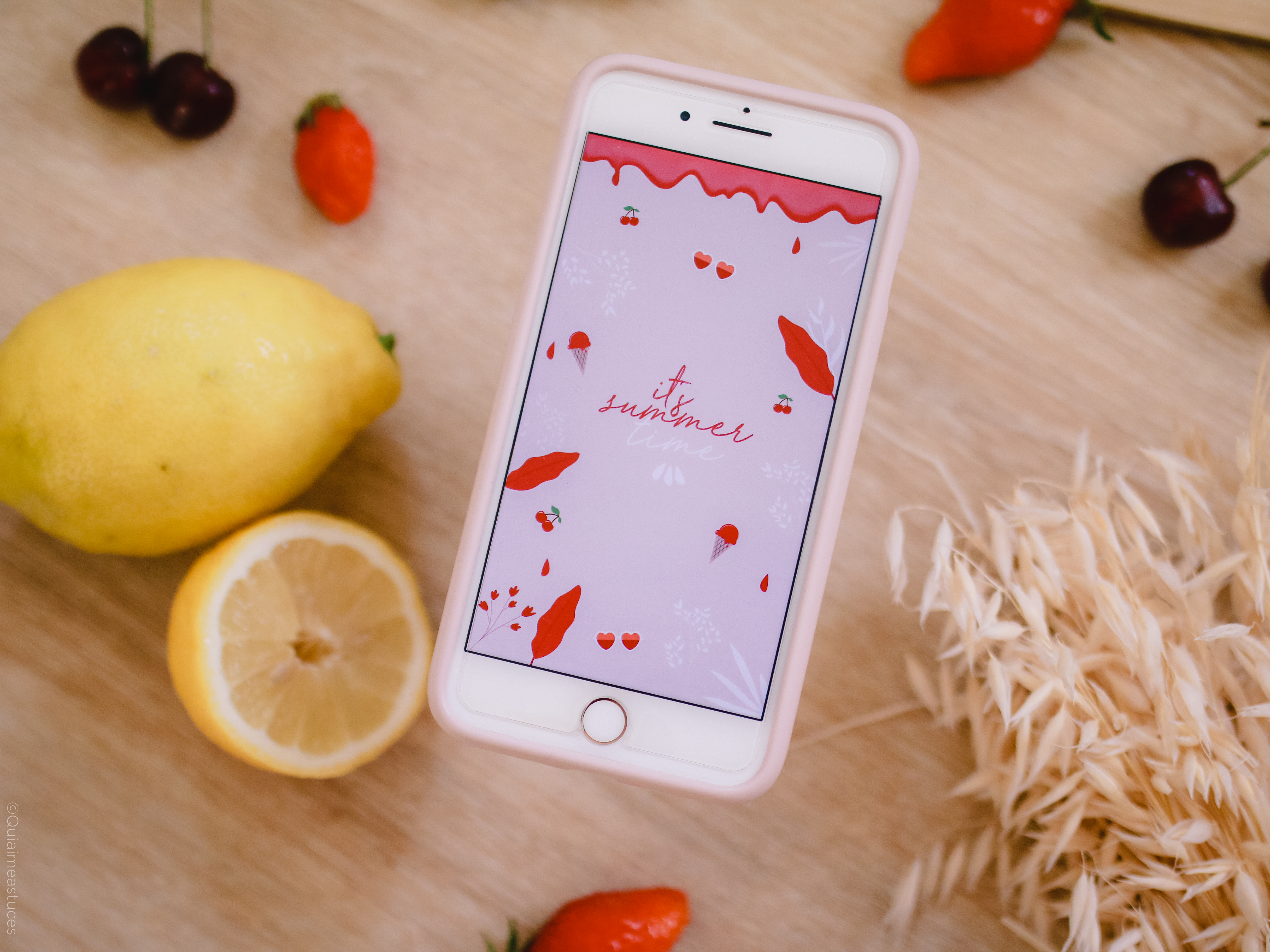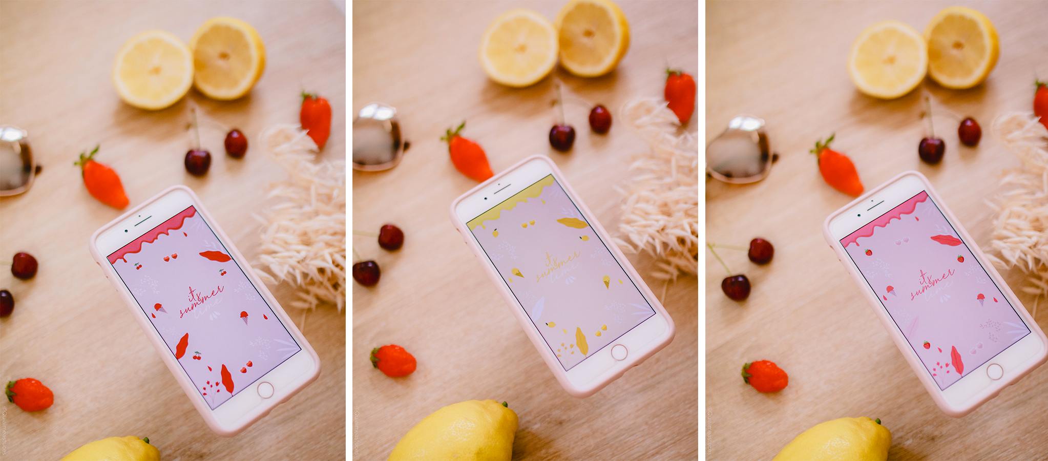 Pour ce nouveau fond d’écran, je suis donc partie sur des tons beaucoup plus acidulés que les précédents. Mon inspiration principale ? Les glaces ! Fraise, cerise ou citron, le choix vous appartient ! D’ailleurs, quelle est votre parfum de glace préféré ? De mon côté, pistache ou vanille ! En grande, grande fan de jaune, j’ai pour l’instant adopté le fond d’écran citron, mais tout peut changer selon mes humeurs ahah ! Rien de mieux qu’un délicieux sorbet ou une glace bien gourmande pour se rafraichir en été, non ? C’est clairement l’une de mes passions premières lorsque les fortes chaleurs commencent à arriver. Moi qui ne supporte que très difficilement les températures élevées, j’essaye, par tous les moyens de trouver des solutions pour rester au frais. La gourmande que je suis ADORE cette solution 🙂