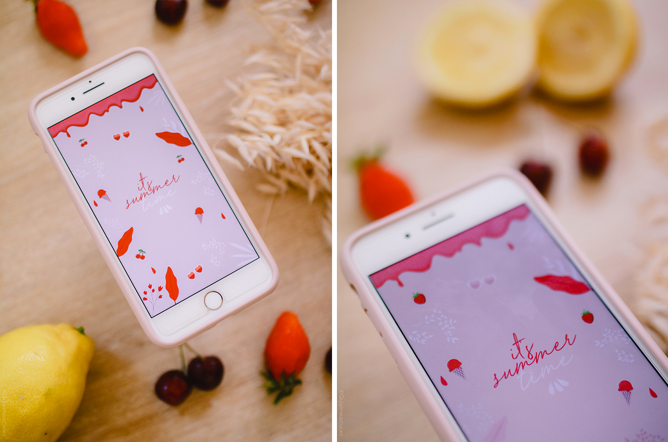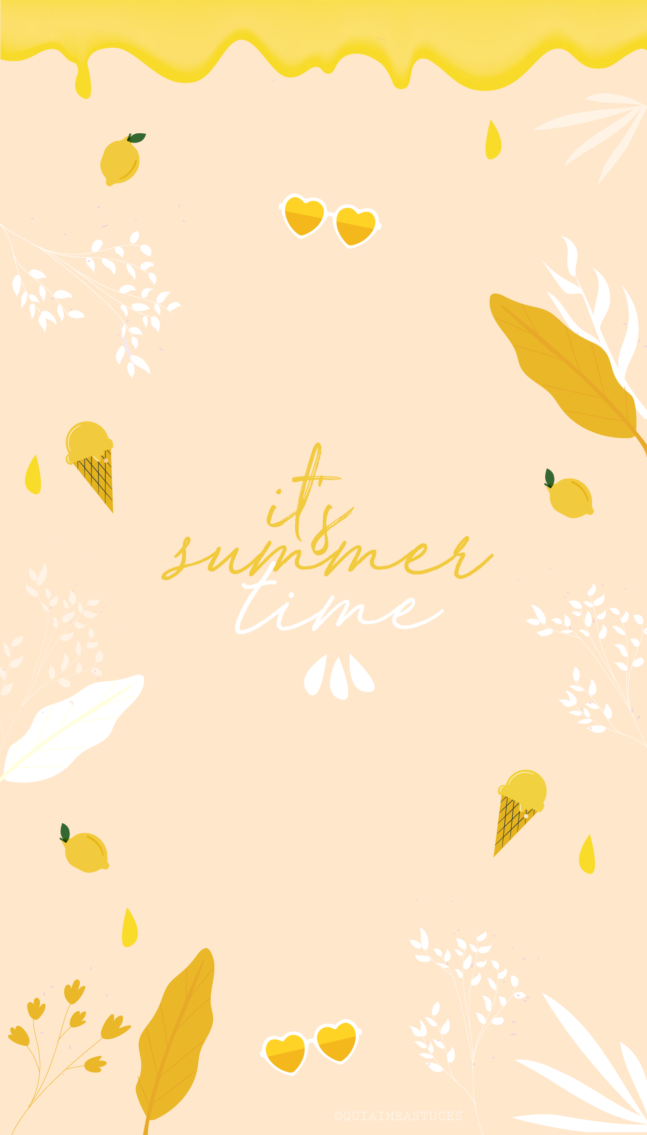 Hello, hello ! J’espère que vous allez bien. 🙂 Une fois n’est pas coutume, le nouveau fond d’écran du mois est de retour ! À chaque création, je dois dire que je m’éclate à imaginer ce que j’aimerai voir sur mon téléphone au quotidien pour me donner le smile ou envie de commencer chaque journée. L’été ce n’est pas très compliqué. Une bonne dose de couleurs pep’s, des fruits et des éléments qui me font penser aux vacances et hop, me voilà heureuse ahah ! Je suis donc repartie sur l’idée des fruits comme les fonds d’écran du mois de mai en y ajoutant des touches plus estivales grâce à la glace ou aux lunettes de soleil. Autant vous dire que je compte déjà les jours avant de retrouver l’océan (& de pouvoir enfin revoir mes parents). Tellement hâte d’être en juillet ! Avec la situation de ces derniers mois, rien n’était trop certain et puis finalement, nous pourrons profiter d’eux cet été avant de les retrouver pour le mariage en octobre. J’espère de tout coeur que vous réussirez vous aussi à profiter de quelques jours de vacances ou d’avoir le bonheur de retrouver vos proches (si ce n’est pas déjà fait).