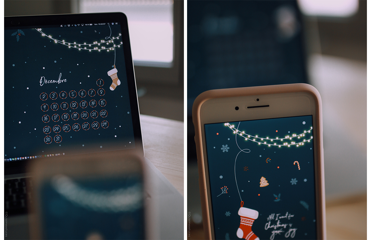 Hello hello ! J’espère que vous passez un bon week-end & un bon dimanche. Qu’avez-vous fait de beau ? J’en connais certaines qui ont attendu le 1er décembre pour procéder à l’installation et à la décoration du sapin. Alors aujourd’hui ça a du briller de mille feux chez beaucoup de monde ahah. Ça fait maintenant un petit moment que j’ai le mien. J’aime le faire assez tôt, en général le soir de mon anniversaire, le 19 novembre. Cette atmosphère lumineuse et traditionnelle (rouge & blanc) me fait beaucoup de bien. Comme je travaille de chez moi, j’en profite beaucoup et j’adore ça ! Dernièrement j’ai manqué de temps avec le travail pour faire des fonds d’écran (en novembre en tout cas). Je me rattrape avant la fin de l’année avec ceux-ci. C’était impensable pour moi de ne pas vous en faire pour Noël. Ce sont clairement mes préférés. L’inspiration me vient rapidement et je sais exactement quoi faire, comment et quelles couleurs choisir. J’espère tellement que vous aimerez ces petits nouveaux. Boubou & mes copines (qui ont eu une petite avant-première comme toujours ahah) ont adoré !
