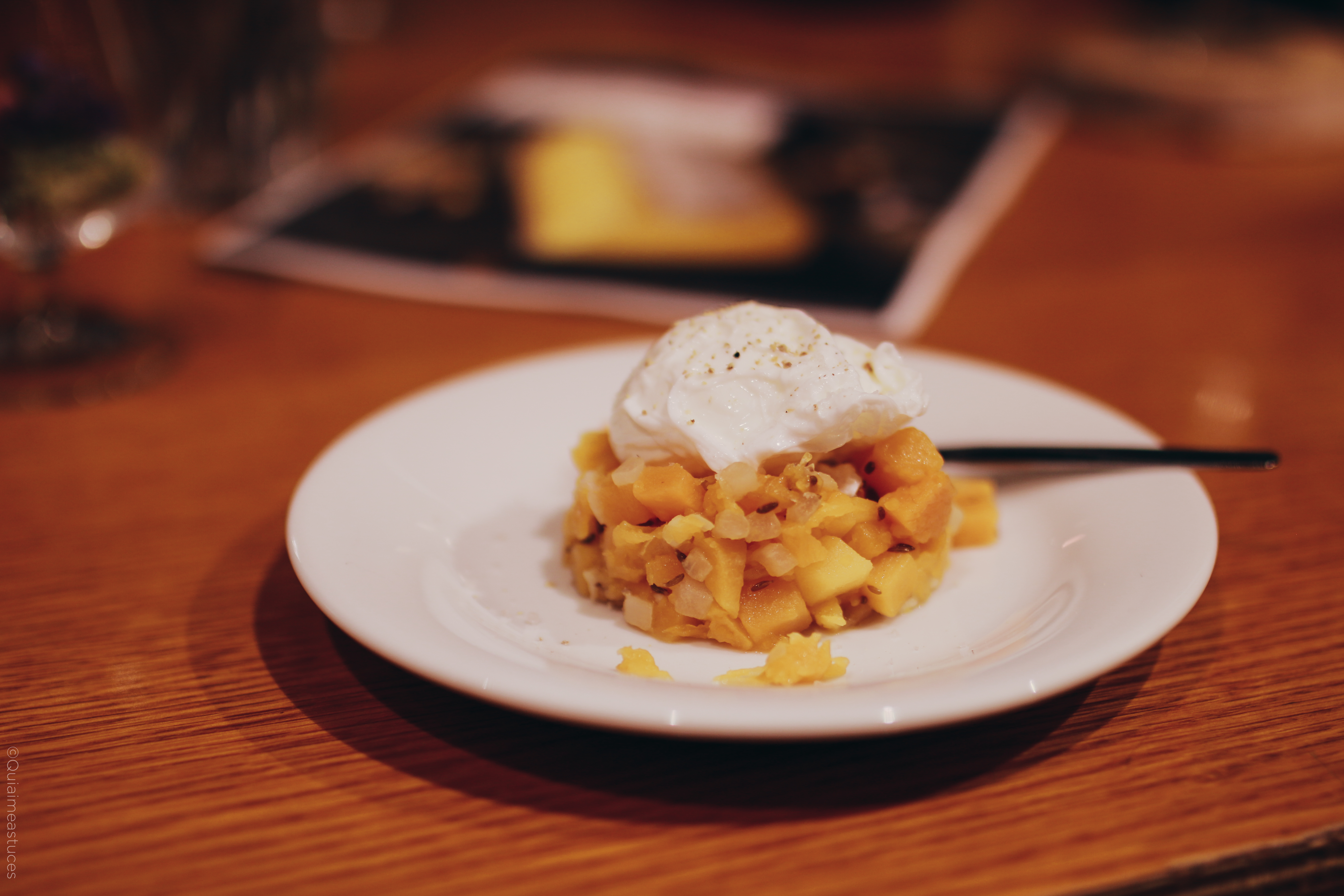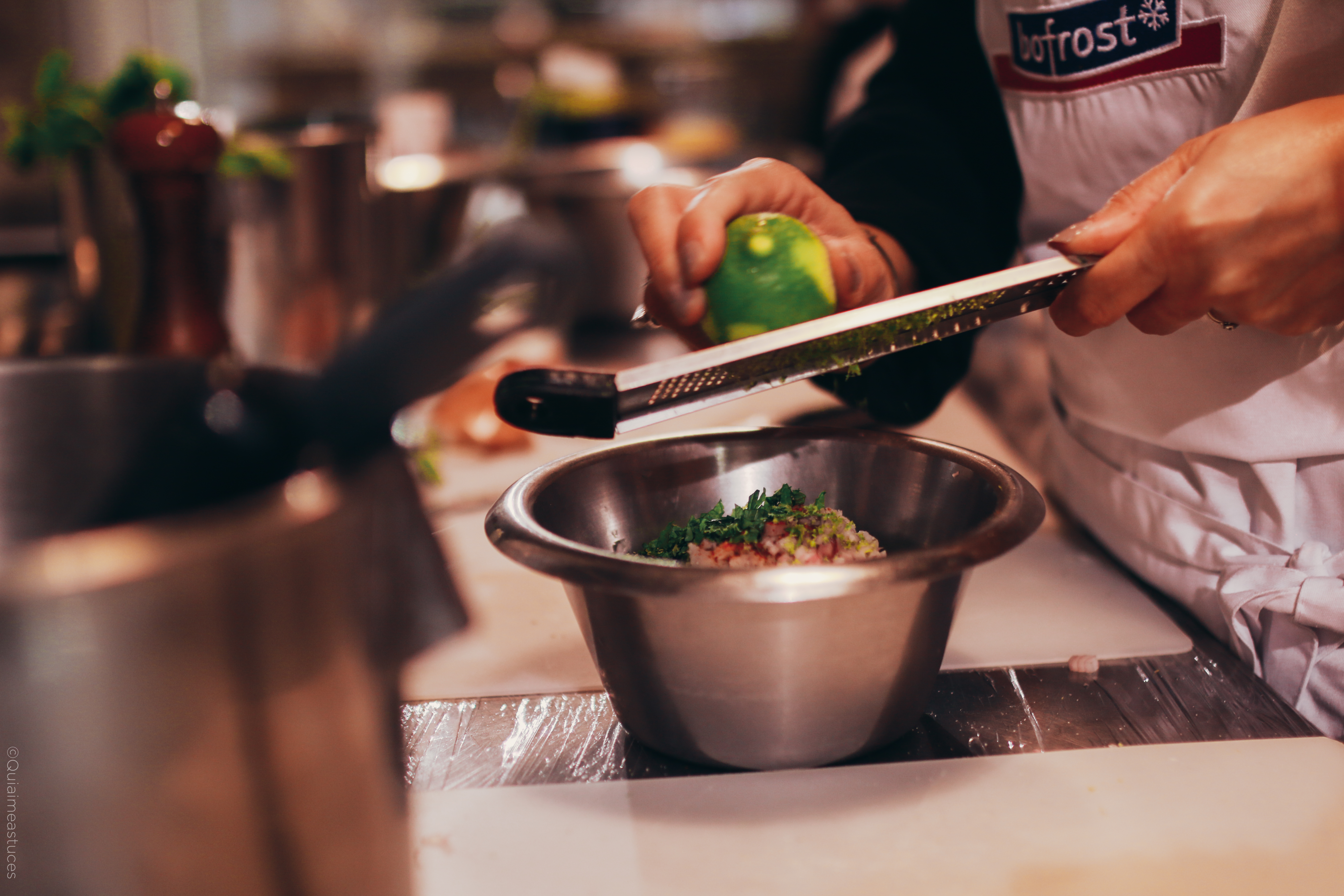 Hello, hello, j’espère que vous allez bien avec ce temps de novembre. Une chose est certaine, c’est la météo parfaite pour se faire plaisir avec les petits plats d’automne ou de la nourriture réconfortante comme j’aime l’appeler. Aujourd’hui c’est une recette que je vous propose sur le blog. Que de nouveauté ! Une recette simple, rapide à réaliser avec des produits de qualité. Vous l’avez peut-être vu, la semaine dernière je me suis rendue à un atelier culinaire à l’Atelier des chefs, invitée par la marque* de surgelés bofrost. C’était un super moment, convivial et chaleureux. J’ai en effet pu apprendre à réaliser plusieurs plats comme des dés de courge rôtis au miel et cumin et oeuf poché, un tartare de cabillaud à la framboise ou encore un burger végétarien guacamole, fève et quinoa. Lors de cet atelier nous avons relevé nos manches et mis la main à la pâte pour apprendre les techniques et éliminer de notre quotidien les mauvais réflexes. J’ai notamment appris à ne pas mettre d’huile d’olive dans la poêle, mais plutôt de l’huile de colza ou de tournesol ou encore à ciseler une échalote et couper du cabillaud à la perfection.