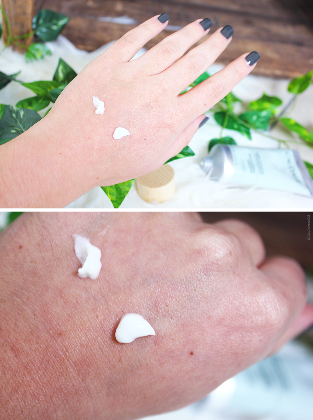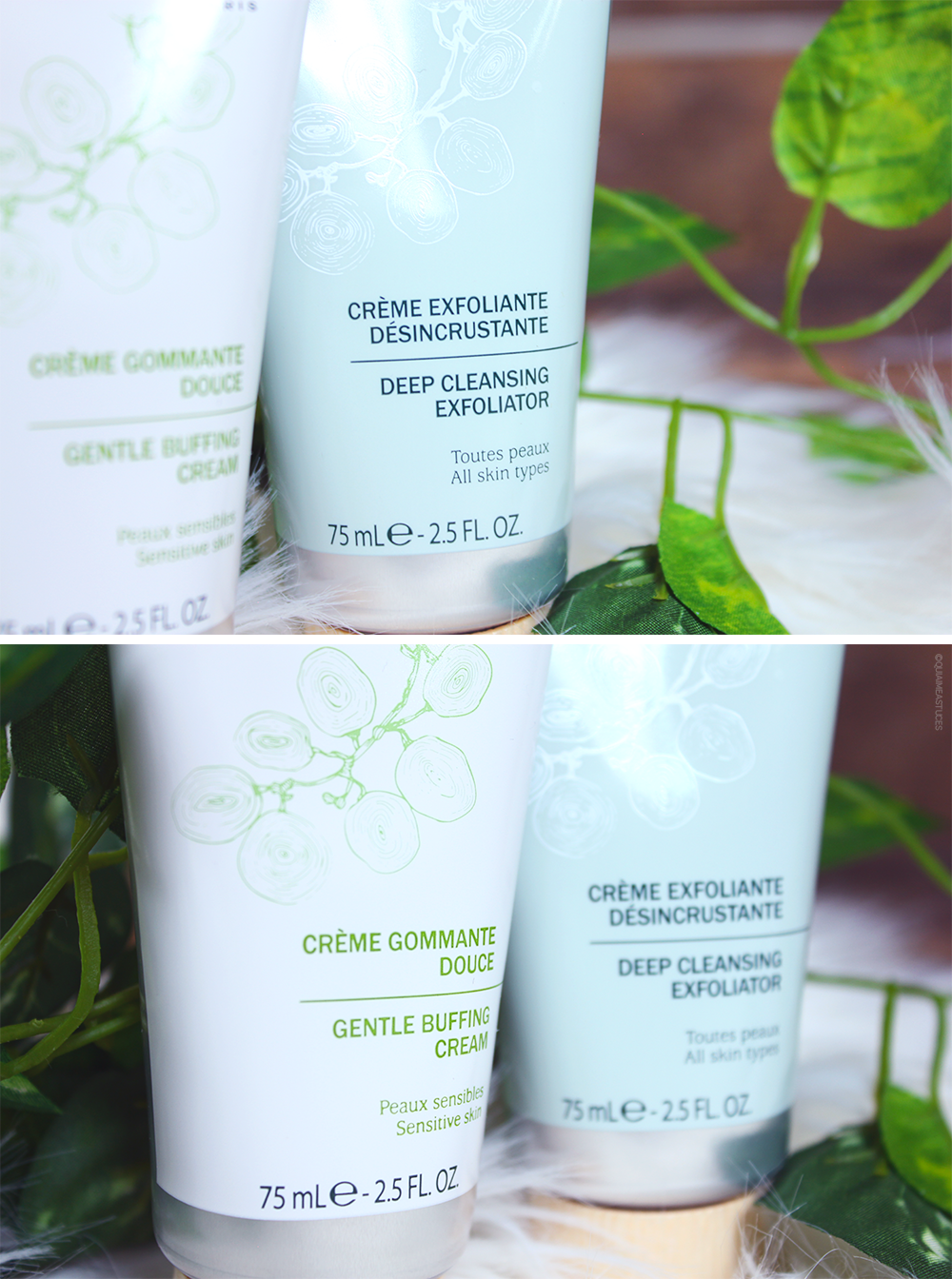 Le premier est la « crème gommante douce ». Sans doute celui que je préfère pour une utilisation plus fréquente. Je ne fais pas de gommage quotidien pour ne pas abîmer ma peau et surtout éviter de l’agresser au maximum, cependant, une à deux fois par semaine ça le fait plutôt bien. Il n’y a pas de règle en fait. Je le fais quand je sens que ma peau en a besoin. Celui-ci est donc très doux et parfait pour lisser ma peau juste avant un bon masque bien hydratant ou tout simplement pour retirer les petites peaux mortes (moment glamour n’est-ce pas ahah). Il retire les petites impuretés sans être trop abrasif. D’ailleurs il est précisé que les peaux sensibles peuvent l’utiliser ce qui est un gros plus si comme moi vous avez peur de gommer votre peau. L’odeur n’est pas désagréable, ça sent les plantes. Peut-être un chouilla trop à mon goût, mais ce n’est pas du tout dérangeant non plus. La texture est douce, crémeuse et les billes gommantes sont petites comme il faut pour un « gentil » gommage 🙂