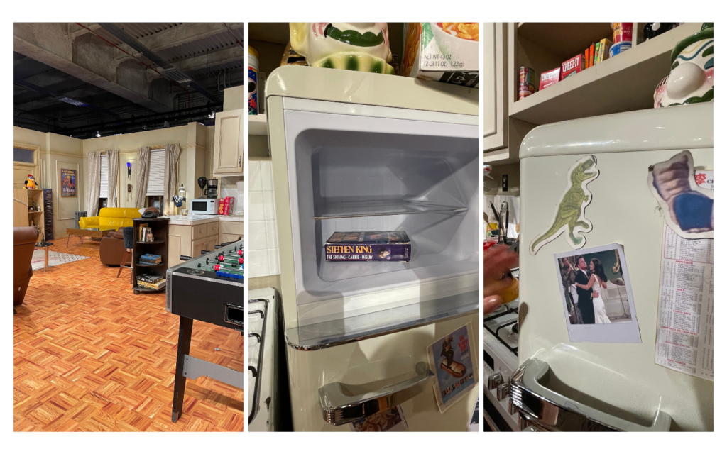 Le fun de regarder partout et de se trouver là où on rêve d’être depuis tant d’années. C’est comme être chez des potes. L’impression que l’on connaît déjà TOUT. LE placard à bordel de Monica, les légendaires étagères bleues de la cuisine, le livre de recettes de Rachel ou encore, wow, dans le frigo, THE célèbre diplomate et sandwich de Joey. Ah oui, encore un petit truc qui aurait été cool : laisser la porte de la salle de bain ouverte ou entreouverte.