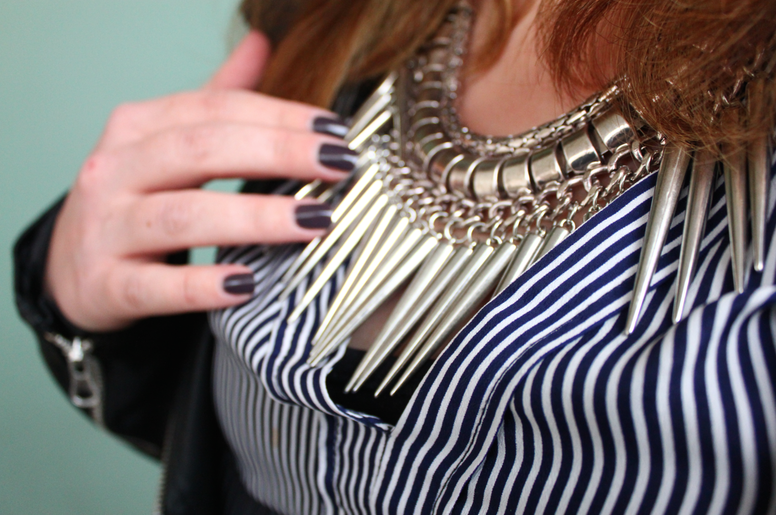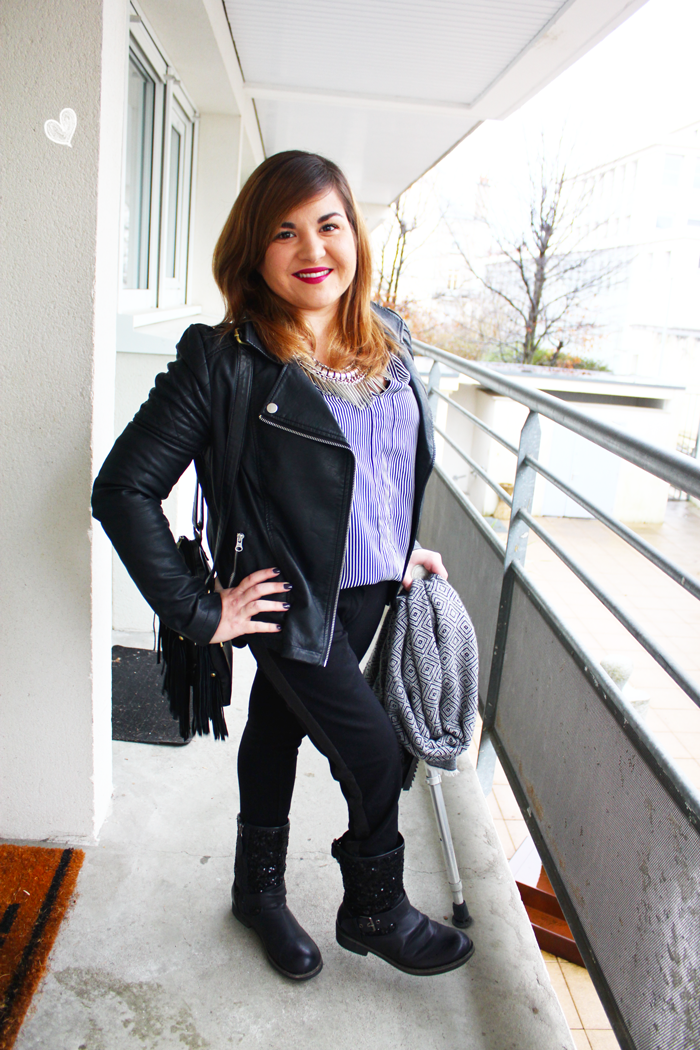 31 janvier, 2015tu as le sens du détails car ton assemblage fonctionne très bien ! J’aile les rayures et le perfecto et le collier !