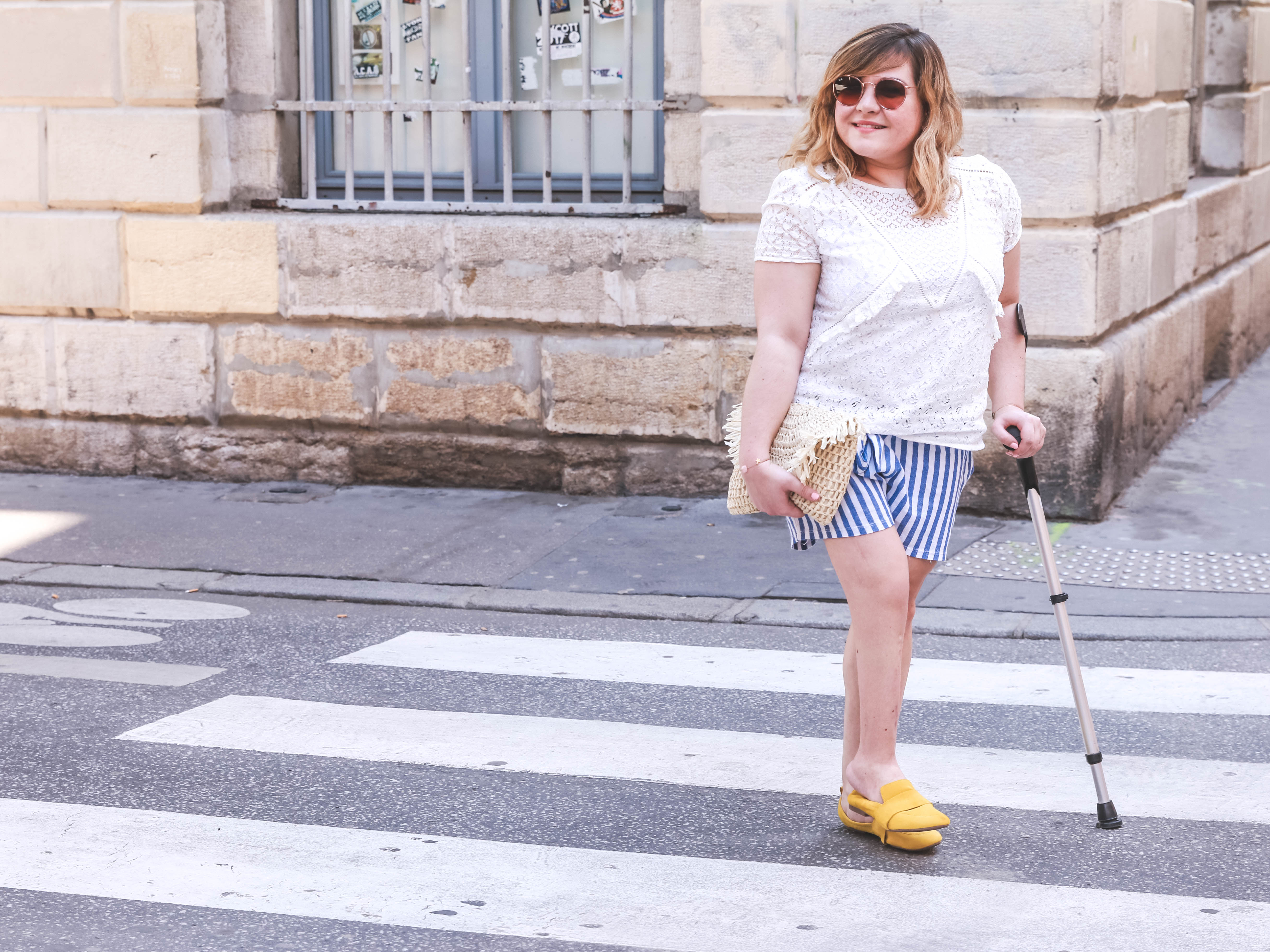 Hello hello, j’espère que vous allez bien ? Plus que 2 petits jours avant ce nouveau grand weekend. Enfin je dis ça, mais je souhaite bon courage à ceux & celles qui ne font pas le pont surtout. De notre côté, c’est départ chez les copains à Nantes puis à la mer pour quelques jours avec Boubou. Je ne sais pas si vous connaissez ce petit coin de paradis où je vais depuis mes 2 ans : Saint-Palais sur Mer. J’avais d’ailleurs partagé avec vous mes bonnes adresses l’année dernière dans cet article. Aujourd’hui, malgré les apparences à Lyon, nous sommes bien au printemps. Ça ne se voit pas au premier abord et pourtant… ! Lorsque nous avons eu quelques (très) belles journées, j’ai pu en profiter pour shooter ce look que j’adore. GROS coup de coeur pour ce short rayé (une jolie sélection vous attends un peu plus bas dans l’article) ainsi que pour ce petit top dentelle Pimkie mais surtout… le début d’une nouvelle expérience pour moi.