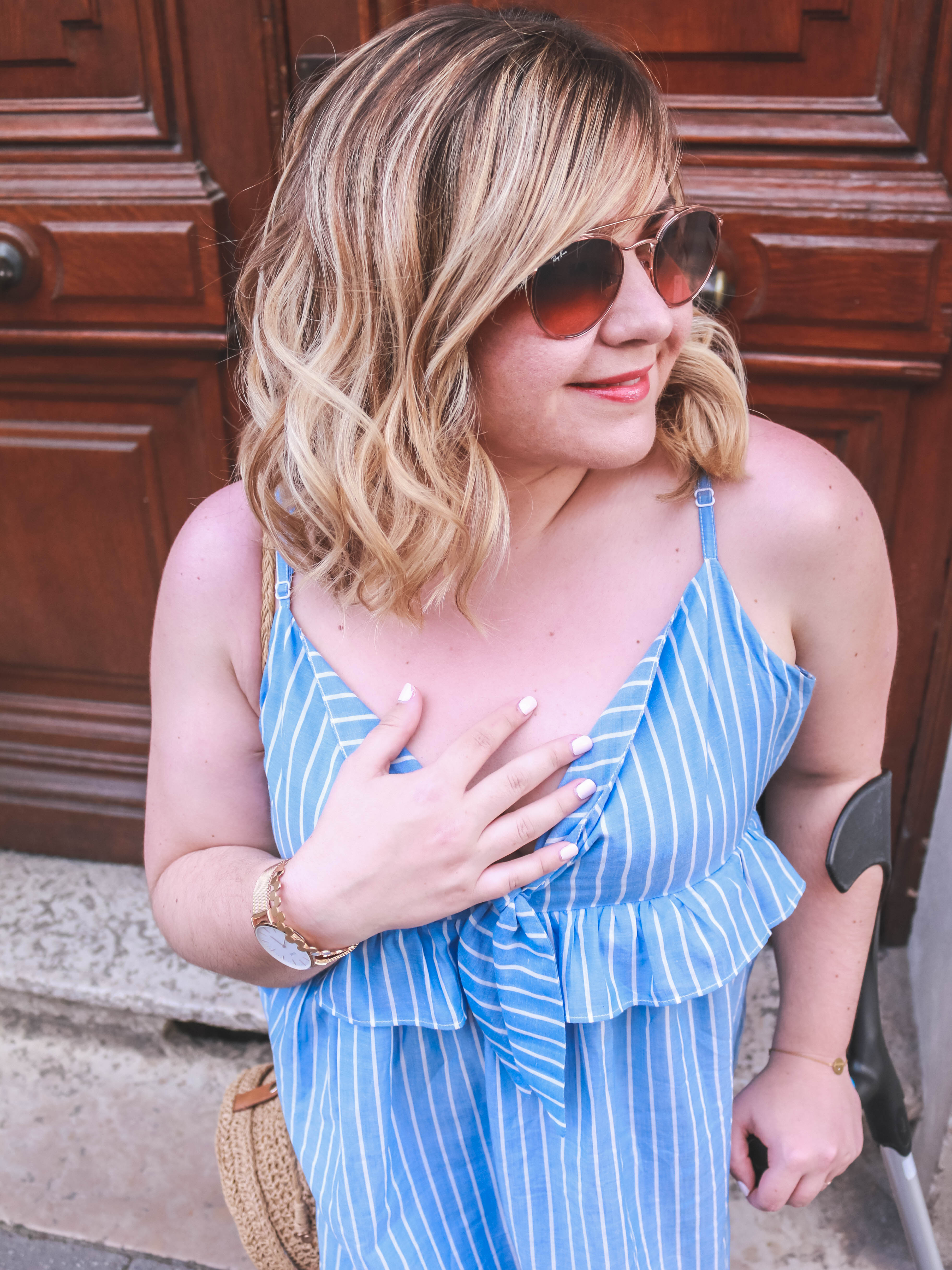 Hello hello ! J’espère que vous allez bien & que vous n’avez pas trop chaud ? Samedi c’était un peu la folie à Lyon niveau temps (coucou les orages…). Du coup j’en ai profité pour mettre ma jolie petite robe Kiabi (dispo en boutique). Lorsque je l’avais reçu ça n’allait pas, je l’ai donc échangé et là encore gros souci de taille. Heureusement j’allais chez ma mamie le jour d’après, je lui ai donc demandé un peu d’aide. Ce n’était pas la robe qui était finalement en cause, mais ma morphologie. Je vous passe les détails, mais ça arrive de temps en temps à cause de mon dos :)) Une après-midi de retouches plus tard (merci à ma tante & à super mamie) voilà la robe toute prête et adaptée à mon corps. On en a aussi profité pour couper le bas comme je ne suis pas très grande, elle est bien mieux avec 15cm de moins. J’aurai préféré grandir de 15cm, mais à ce qu’il parait c’est plus compliqué haha !
