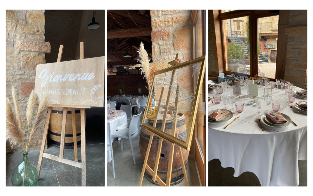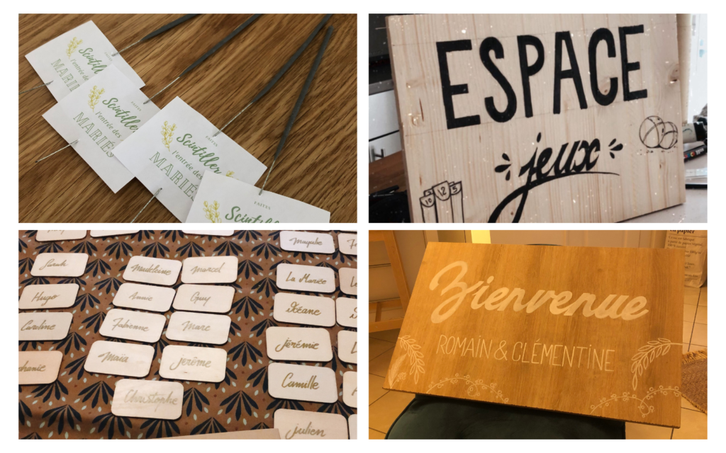 - Les différents panneaux (bienvenue, espace jeux, plan de table, etc)