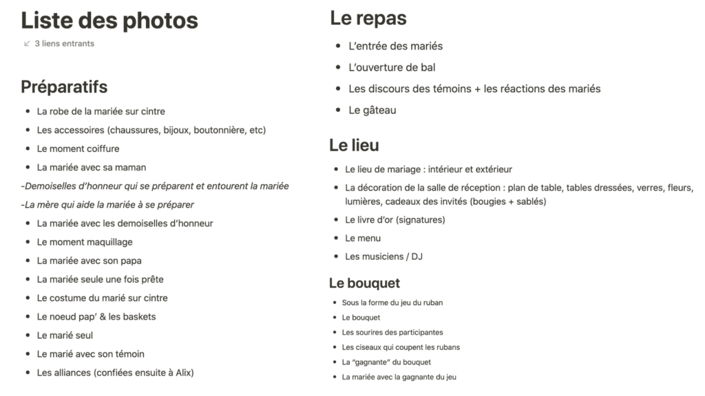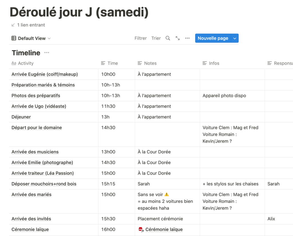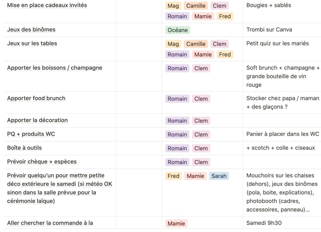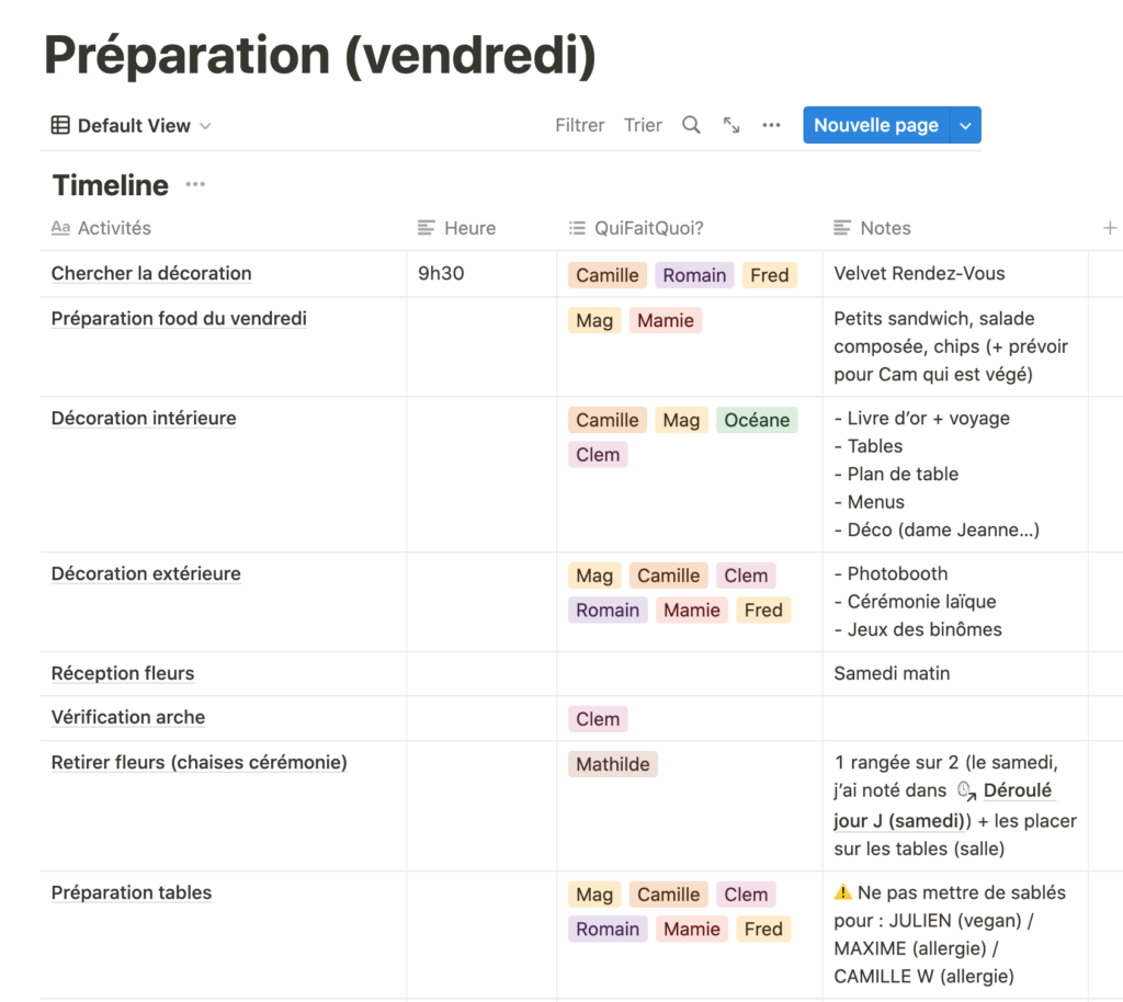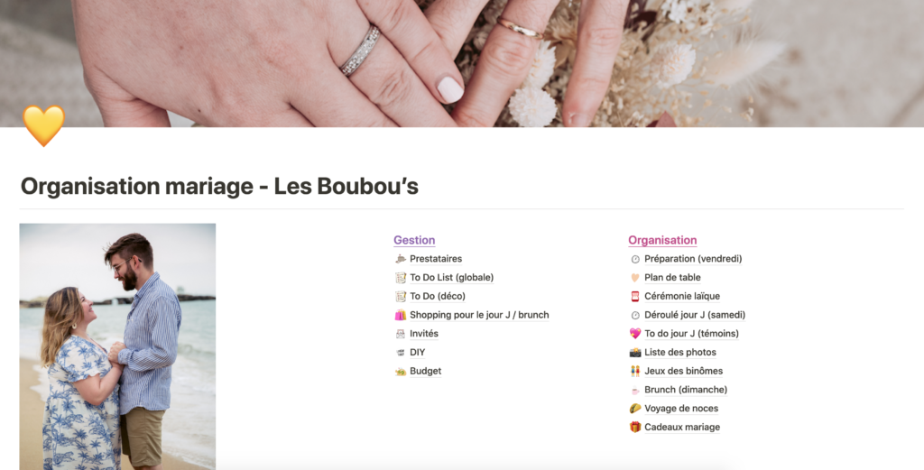 Voici des petites captures d’écran de notre Notion pour nous aider à tout organiser :