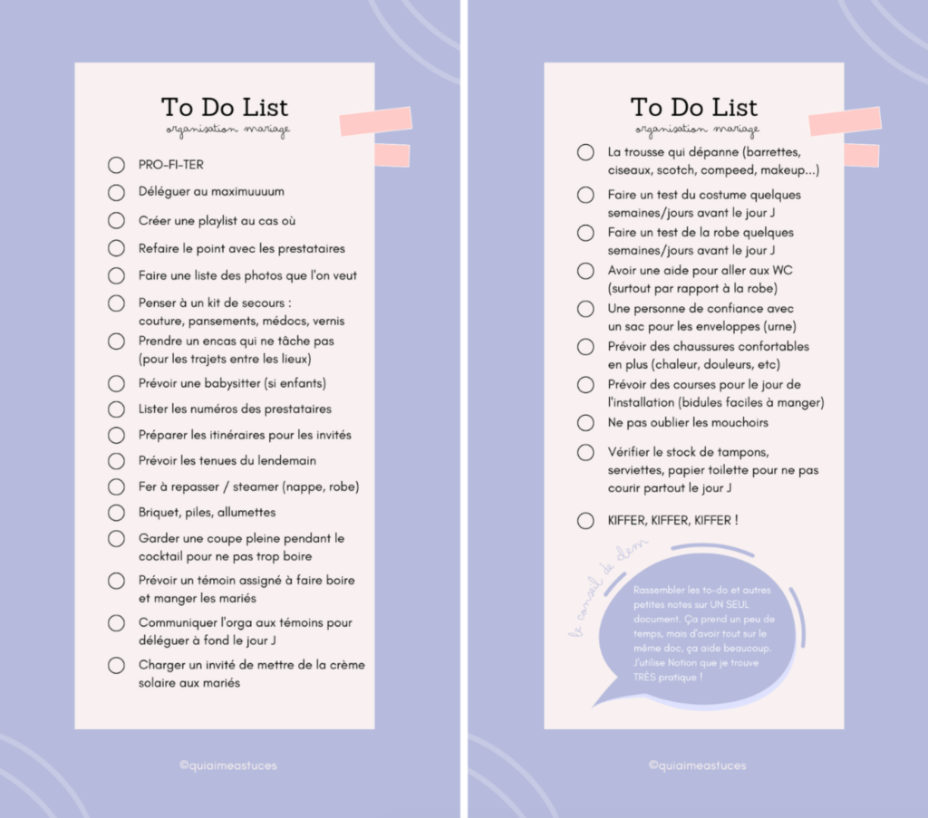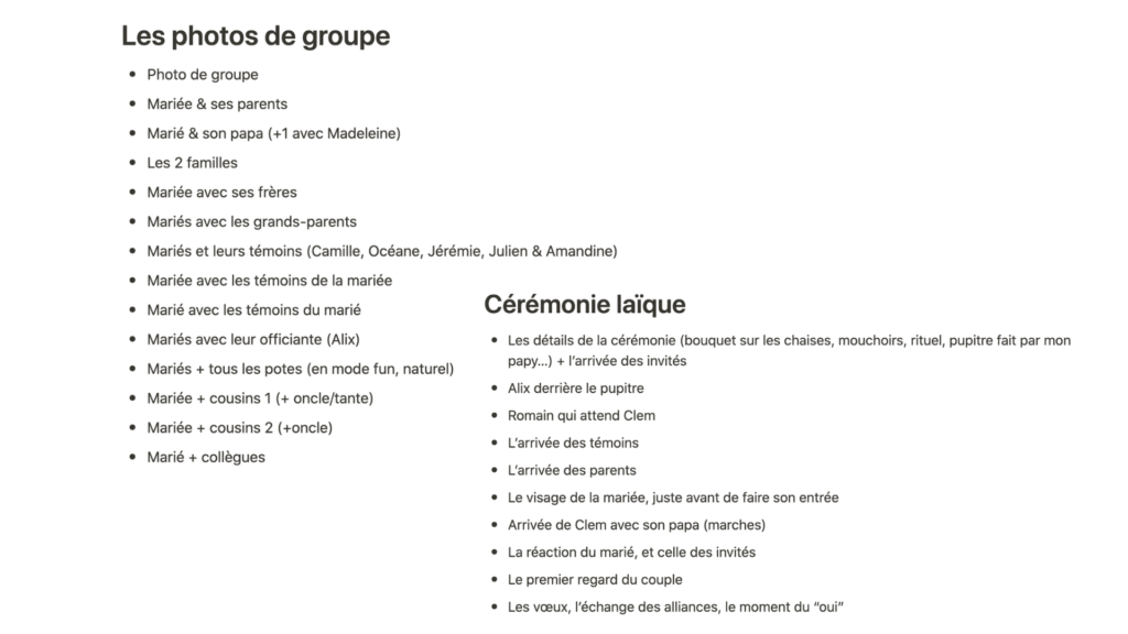 J’imagine que c’est propre à chaque couple, mais voici la notre (sachant que nous faisions confiance à Émilie à 200%) :