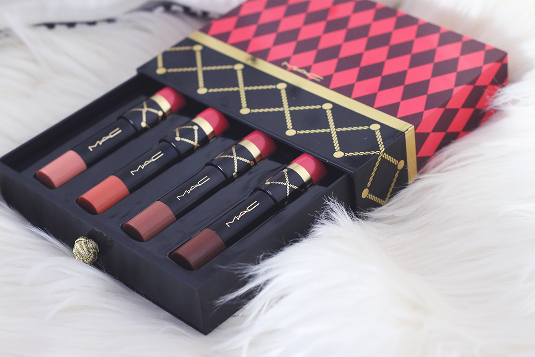 Ce joli coffret Mac « Kit Patentpolish Nude » offert par mon petit frère, je peux vous assurer que ce fut une surprise énorme. Le plus beau dans tout ça ce n’est pas une question de marque, mais le regard qu’il a fait lorsque j’ai ouvert la boîte. Il était si content de me l’offrir que c’est finalement ça mon plus beau cadeau 🙂 Il s’agit d’un coffret de 4 mini crayons à lèvres au rendu discret et naturel, glossy glossy ahah. Les teintes sont à tomber ! Du nude / caramel, j’aime beaucoup !