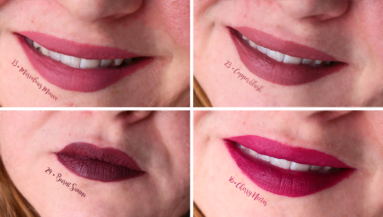 Je suis conquise ! C’est tout à fait ce que je recherche pour ce genre de produit. Une tenue d’environ 4h à 5h selon ce que l’on fait. Bon l’autre jour, j’ai déjeuné du chèvre miel et autant dire que le rouge à lèvres n’a pas aimé le miel ahah. M’enfin, une retouche est le tour est joué. En revanche, certaines teintes comme Burnt Sienna ont tendance à s’effriter un peu au niveau des commissures au bout de 5h. (Mes lèvres sont un peu abîmées sur les photos, je sors d’un rhume et respirer par la bouche n’a rien arrangé ahah). Sont-ils plus asséchants qu’un autre ? Je ne trouve pas. D’ailleurs je les trouve même plutôt confortables, les premières heures je ne les sens quasiment pas sur mes lèvres. Et puis, au fil de la journée, c’est normal le tout s’assèche petit à petit.