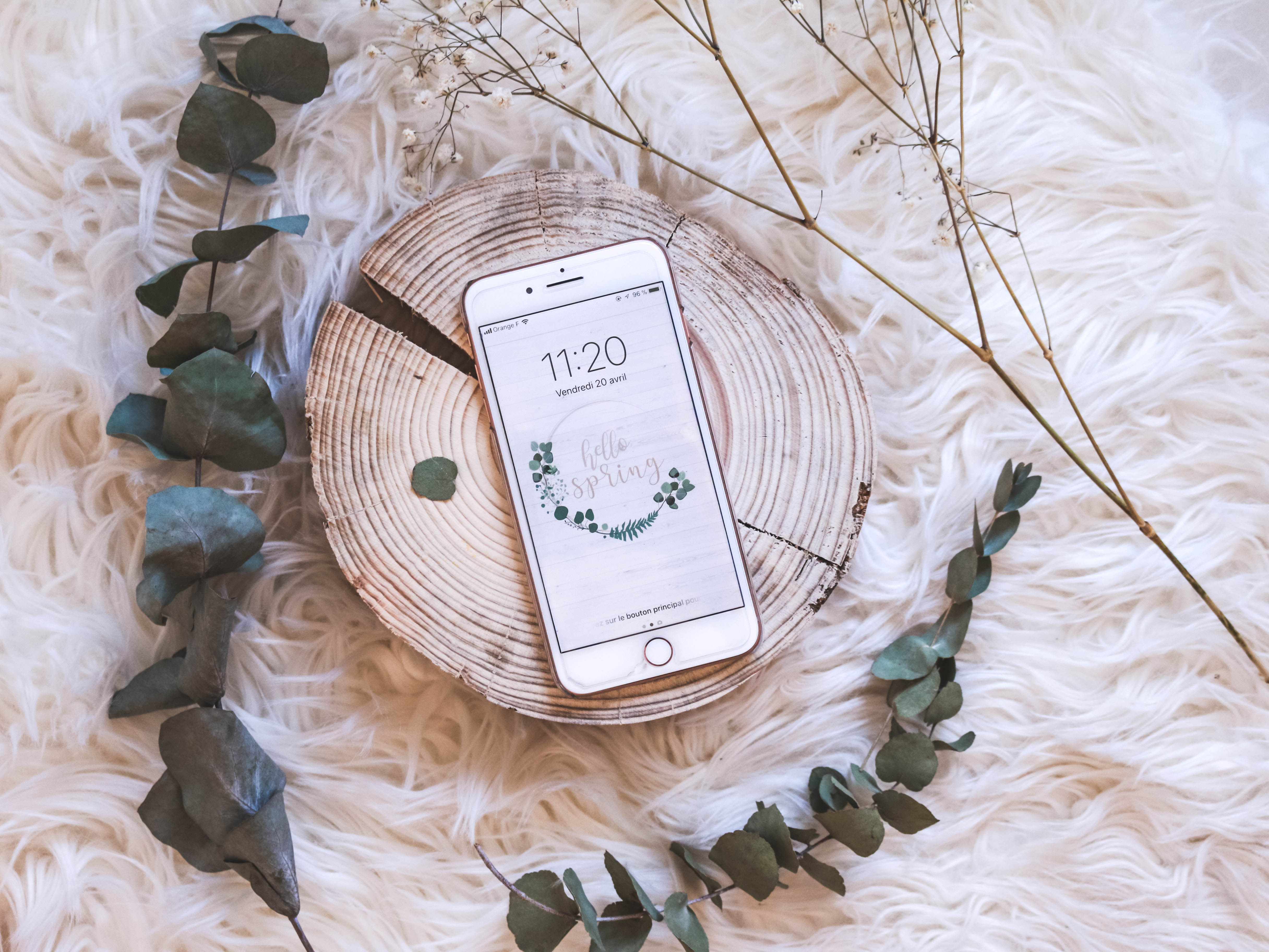 Hello hello, j’espère que vous allez bien à quelques heures du weekend ? On est d’accord que c’est plus l’été que le printemps en ce moment. Vous ne trouvez pas ? Loin de moi l’idée de me plaindre, au contraire. Quel bonheur ce soleil & ces températures ! Je suis ravie de sauter dans une petite robe le matin plutôt que dans un gros pull / pantalon haha. C’est en retravaillant le design du blog la semaine dernière que j’ai fait un constat. Le dernier fond d’écran date du mois de Janvier… Il était donc grand temps de remédier à tout ça. Au vu des nombreux messages que j’ai reçu sur Instagram depuis l’annonce de la création du petit nouveau, je pense que vous êtes impatientes. Ça me fait chaud au coeur, vraiment. À chaque nouveau fond d’écran, vos messages de soutien m’aident énormément et me boost pour continuer de créer. Pour celui-ci j’avais envie de simplicité, un thème paisible. J’ai trouvé l’inspiration chez moi grâce aux branches d’eucalyptus présentes dans chaque vase de mon appartement (oui, oui, je suis une grande fan). Net contraste avec les précédents qui étaient tous très sombres, j’avais besoin de douceur pour le mois d’avril. J’espère donc que ce nouveau fond d’écran vous plaira et saura habiller vos téléphones comme il se doit 🙂 Je dois bien vous avouer qu’il fait parti de mes préférés… Il s’offre une place dans mon top 3.